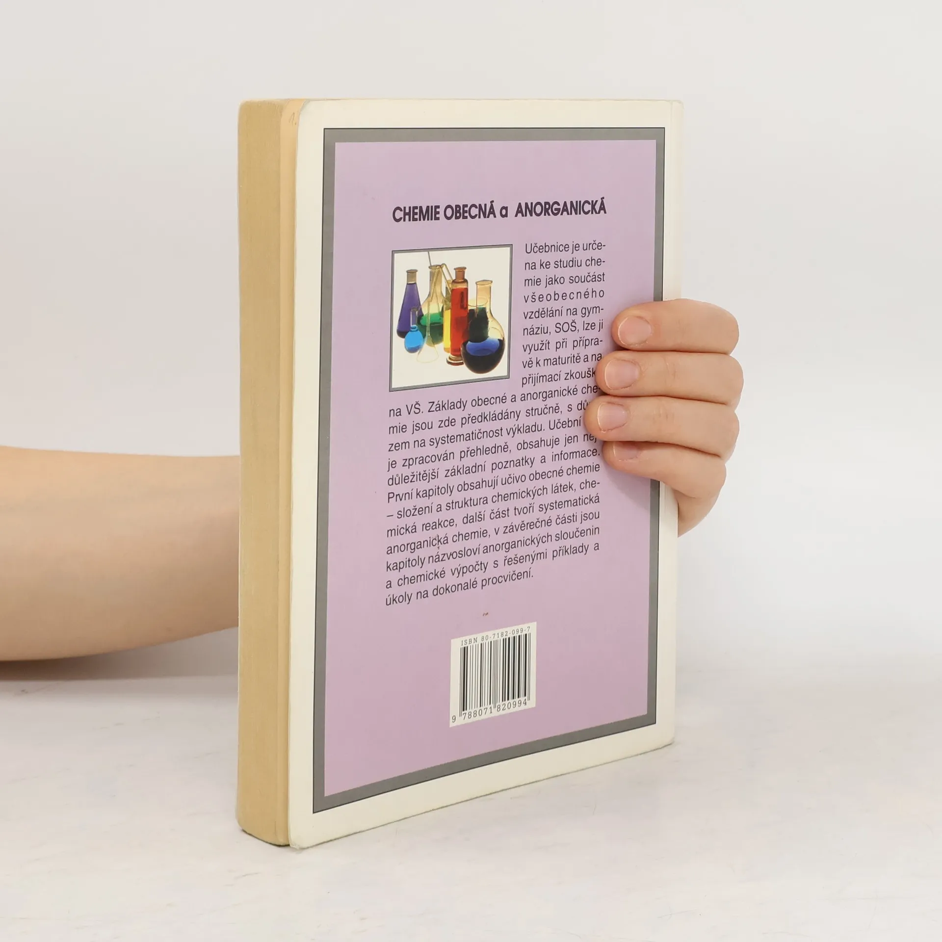 Základy obecné a anorganické chemie jsou předkládány stručně, s důrazem na systematičnost výkladu. Učební text jednotlivých kapitol je ukončen kontrolními otázkami k procvičení učiva. Užitý styl výkladu vychází z pedagogické praxe, obsahuje jen nejdůležitější základní poznatky a podstatná fakta. Učebnice je určena ke studiu chemie na gymnáziích, středních odborných školách, lze ji použít při přípravě k maturitě a na přijímací zkoušky z chemie na VŠ (obory chemické, biologické, ekologické, lékařství atd.).