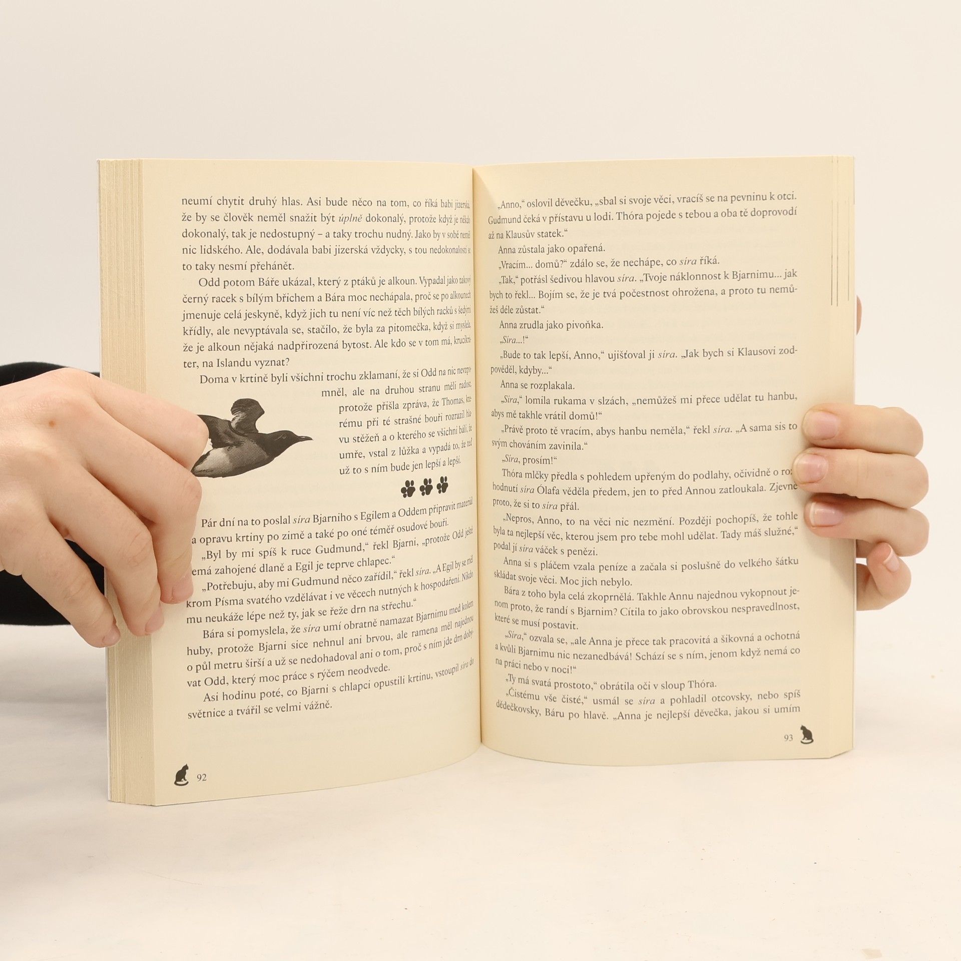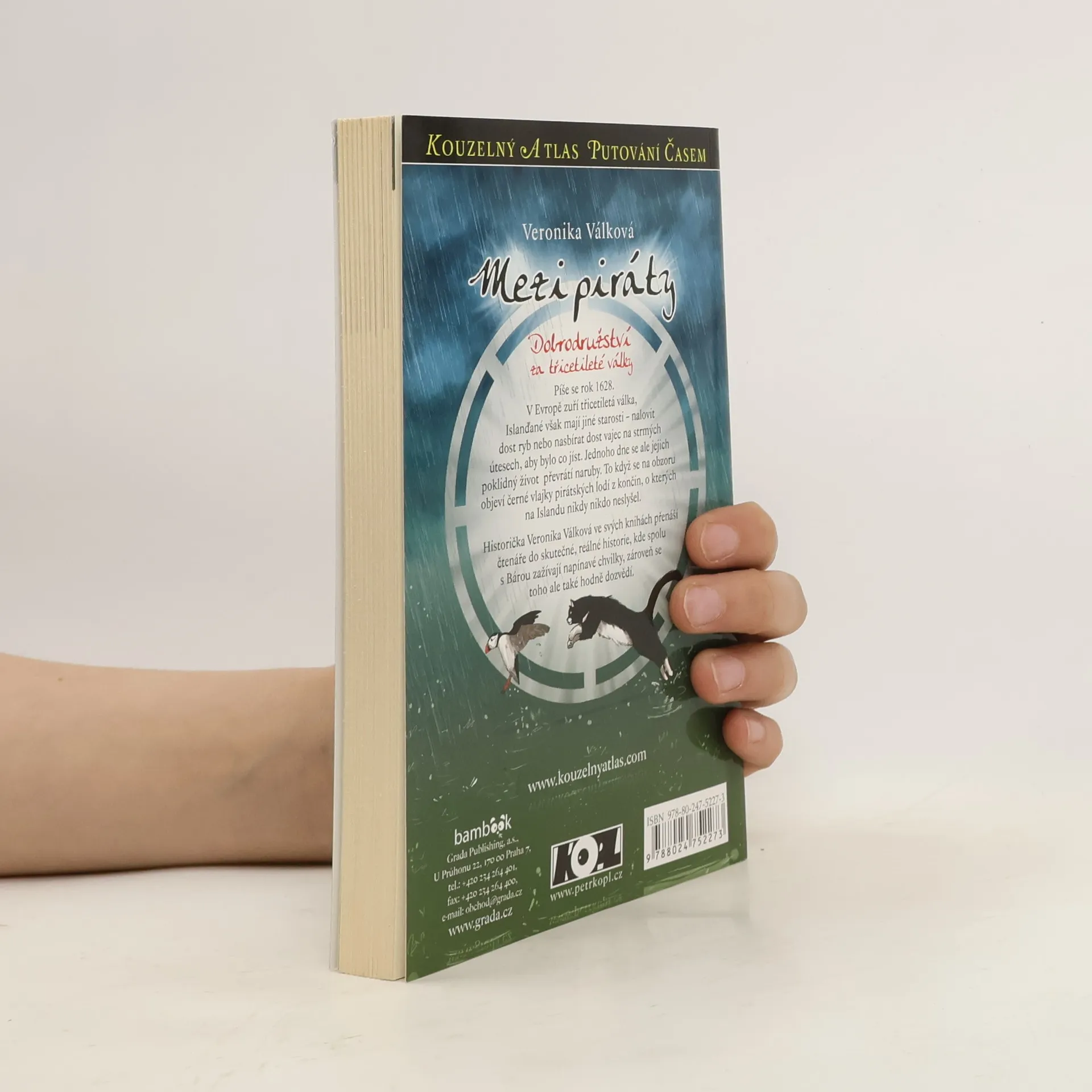 Až do téhle chvíle si Bára myslela, že v drnových domečcích žijí jen hobiti. Díky atlasu zjistila, že tak v minulosti žili i Islanďané. Zatímco v Evropě zuří třicetiletá válka, obyvatelé malého ostrůvku u islandského pobřeží mají jiné starosti – nalovit hodně ryb a nasbírat na strmých útesech dost vajec divokých ptáků, aby měli vůbec co jíst. Při obojím jde o život. Rybáře může na širém moři snadno překvapit nečekaná bouře a při sběru vajec stačí malá chyba, a nešťastník se zřítí z více než stometrové výšky do divokého příboje... Tohle ovšem Islanďané pokládají za takovou „každodenní normálku“. Ale jednoho dne se na obzoru objeví piráti...