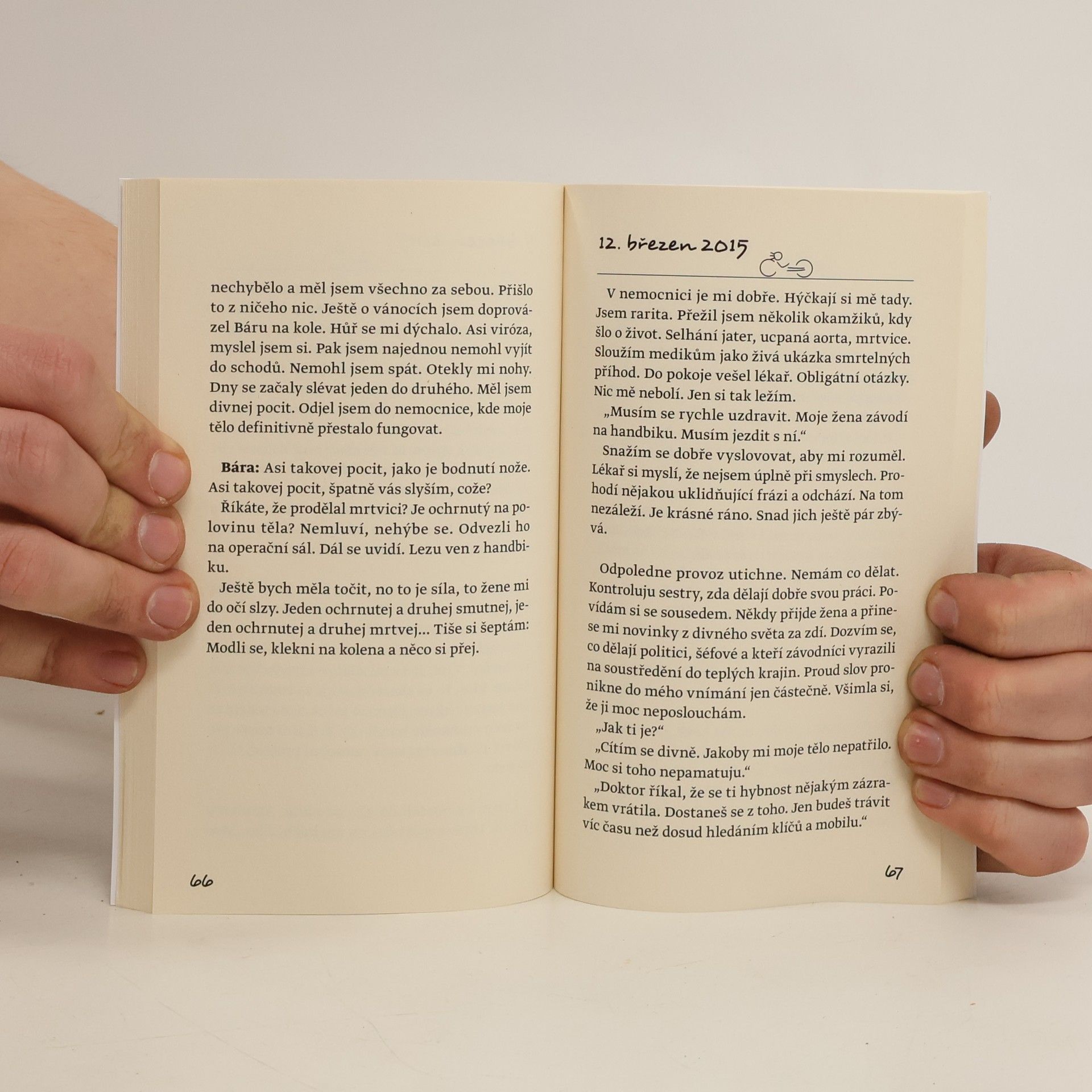 Příběh mého závodění na handbiku je vyprávěn z pohledu mého manžela. Prolog: Moje žena spadla před třemi lety z hrušky, poranila si míchu a náš život se obrátil úplně na ruby. Nemůže chodit po pláži v mokrém písku, ale dostanu ji tam i s vozejkem. Nemůže trhat třešně v aleji u silnice, ale já jí je přinesu, pokud mi slíbí, že se to obejde bez dalších následků. Nemůže lézt po horách, ale občas je s ní legrace i na rovině, když mi zmizí z dohledu v pangejtu. Nemůže běhat, ale závodí na handbiku. Moje žena musí mít vždycky něco extra. Jak se padá z hrušky popsala v prvním dílu Paradeníku. Já budu vyprávět, jak se jezdí s Bárou.
