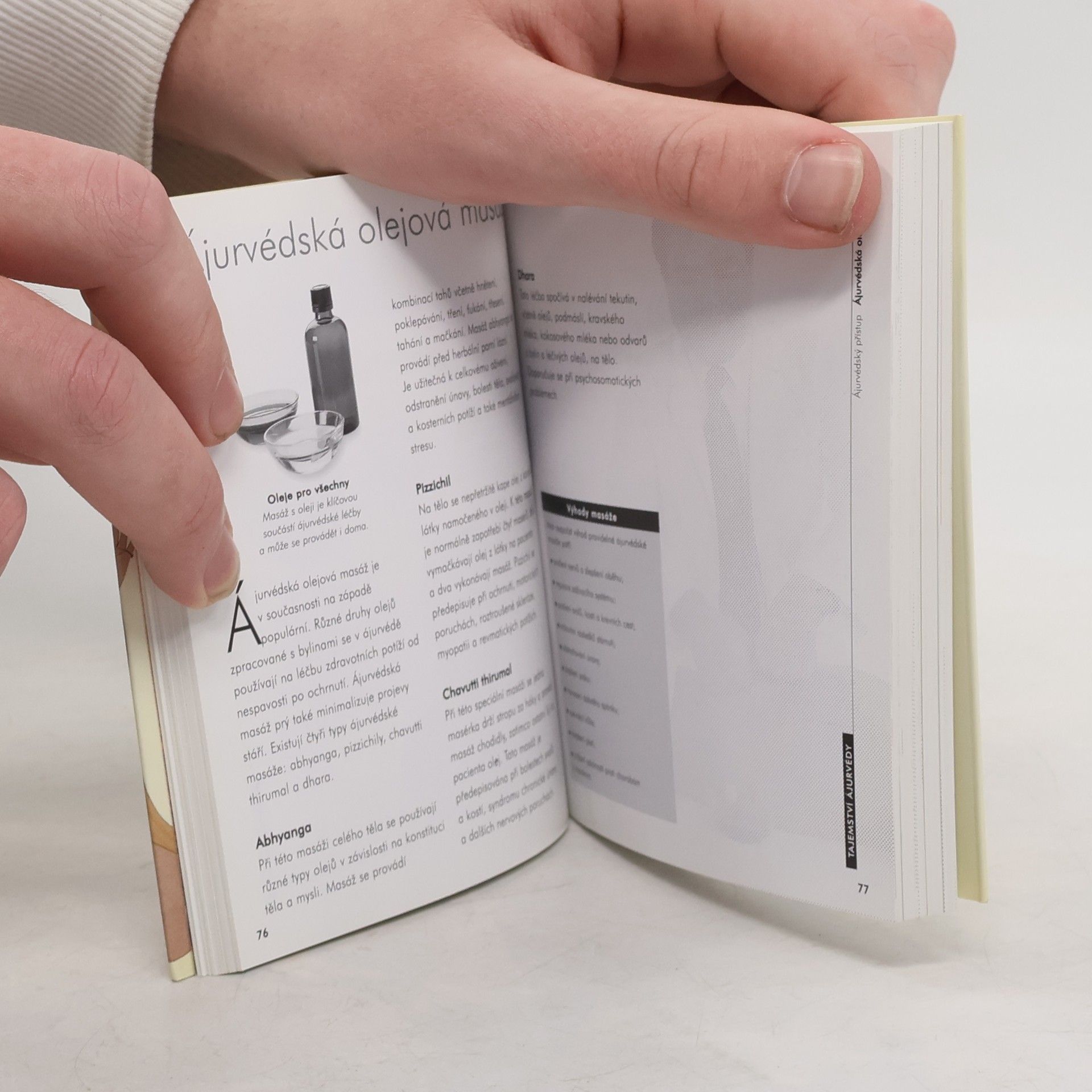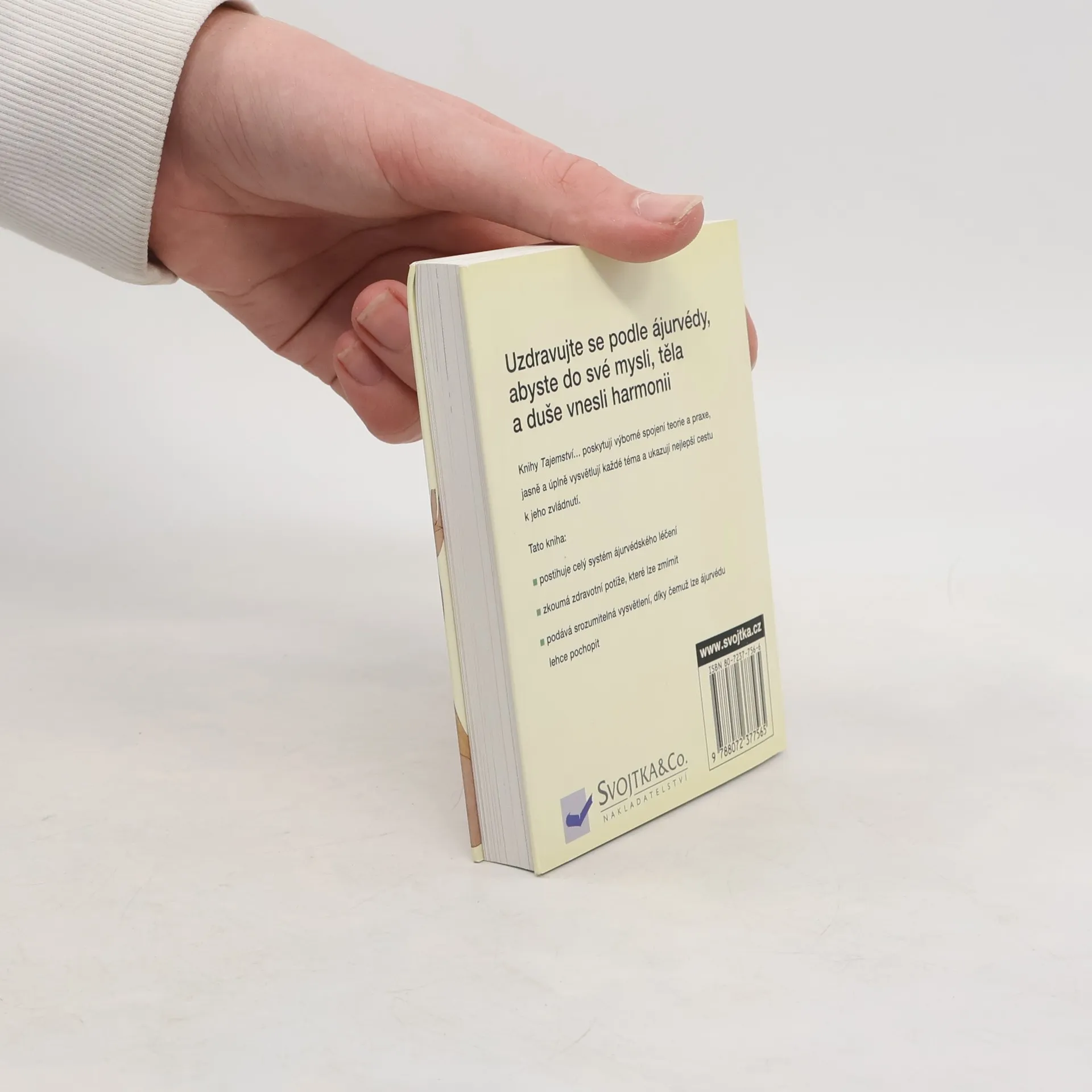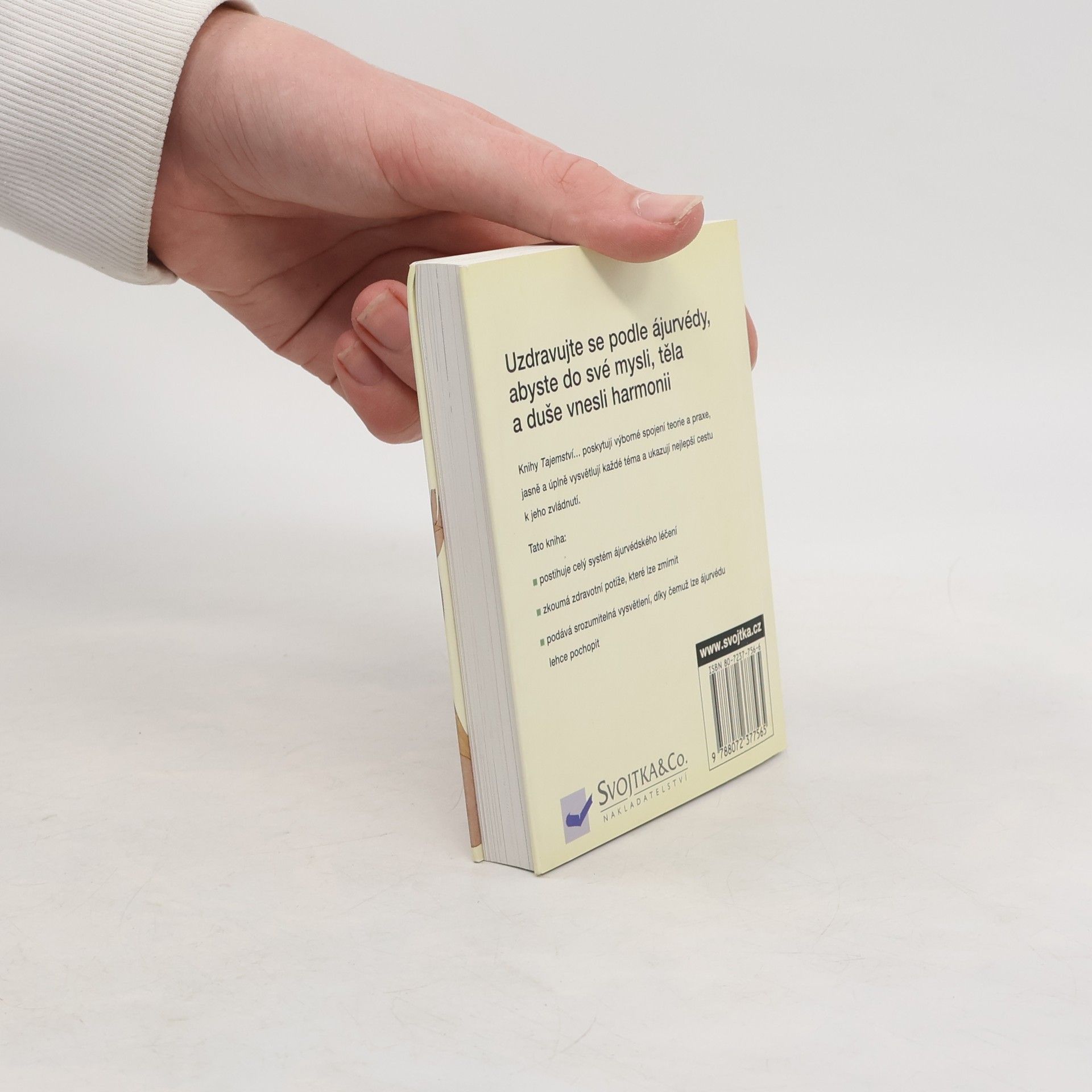 Popis indické léčebné metody nazývané ájurvéda, jejích filozofických principů, historických kořenů i jejího využití v alternativní medicíně. Publikace je dalším svazkem edice Tajemství a je věnována tradičnímu systému léčebné praxe v Indii a na Srí Lance. Autor seznamuje s dlouholetou historií árujvédy, vysvětluje princip jednoty těla a ducha, které jsou pro zdraví nezbytné a popisuje metodu vedoucí k určení vlastní ájurvédské konstituce i léčebné postupy vhodné pro daný konstituční typ. Poslední kapitola je věnovaná stravě a základním cvikům jógy, jako nedílným součástem této léčebné metody. Kniha je bohatě doplněna instruktážními nákresy a barevnými fotografiemi. Připojen výkladový slovníček odborných termínů, rejstřík pojmů a soupis adres webových stránek, na kterých čtenář nalezne informace o ájurvédě.