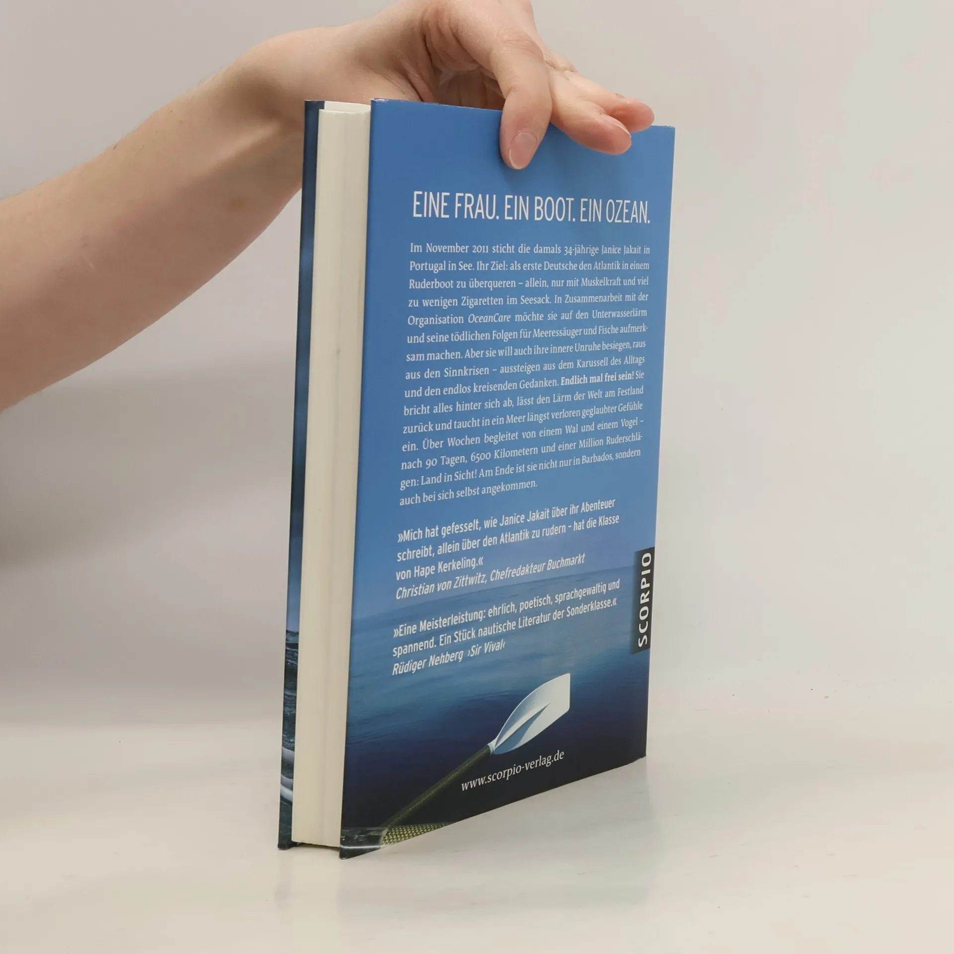 Im November 2011 bricht die 34-jährige Janice Jakait in Portugal auf, um als erste Deutsche den Atlantik in einem Ruderboot zu überqueren – allein, nur mit Muskelkraft und wenigen Zigaretten. In Zusammenarbeit mit OceanCare möchte sie auf den Unterwasserlärm und dessen tödliche Auswirkungen auf Meeressäuger und Fische aufmerksam machen. Gleichzeitig sucht sie nach innerer Ruhe, um aus dem Karussell des Alltags auszubrechen und endlich frei zu sein. Sie lässt den Lärm der Welt hinter sich und taucht in ein Meer längst verlorener Gefühle ein. Begleitet von einem Wal und einem Vogel, rudert sie 90 Tage lang, legt 6500 Kilometer zurück und erlebt eine Million Ruderschläge, bis sie schließlich in Barbados ankommt und auch bei sich selbst ankommt. Janice Jakait erfüllt sich ihren Traum, den Atlantik allein zu überqueren, nachdem sie zehn Jahre darauf hingearbeitet hat. In ihrem speziell ausgerüsteten Ruderboot Bifröst rudert sie täglich zehn bis zwölf Stunden in zweistündigen Schichten. Trotz Seekrankheit, Schlafstörungen und der Herausforderungen der Natur findet sie in der Stille des Ozeans eine nie gekannte innere Ruhe. Mit eindringlicher Sprache schildert sie ihre Tour de Force und lässt den Leser an einem einzigartigen Abenteuer teilhaben, das bisher keine Deutsche bewältigt hat.