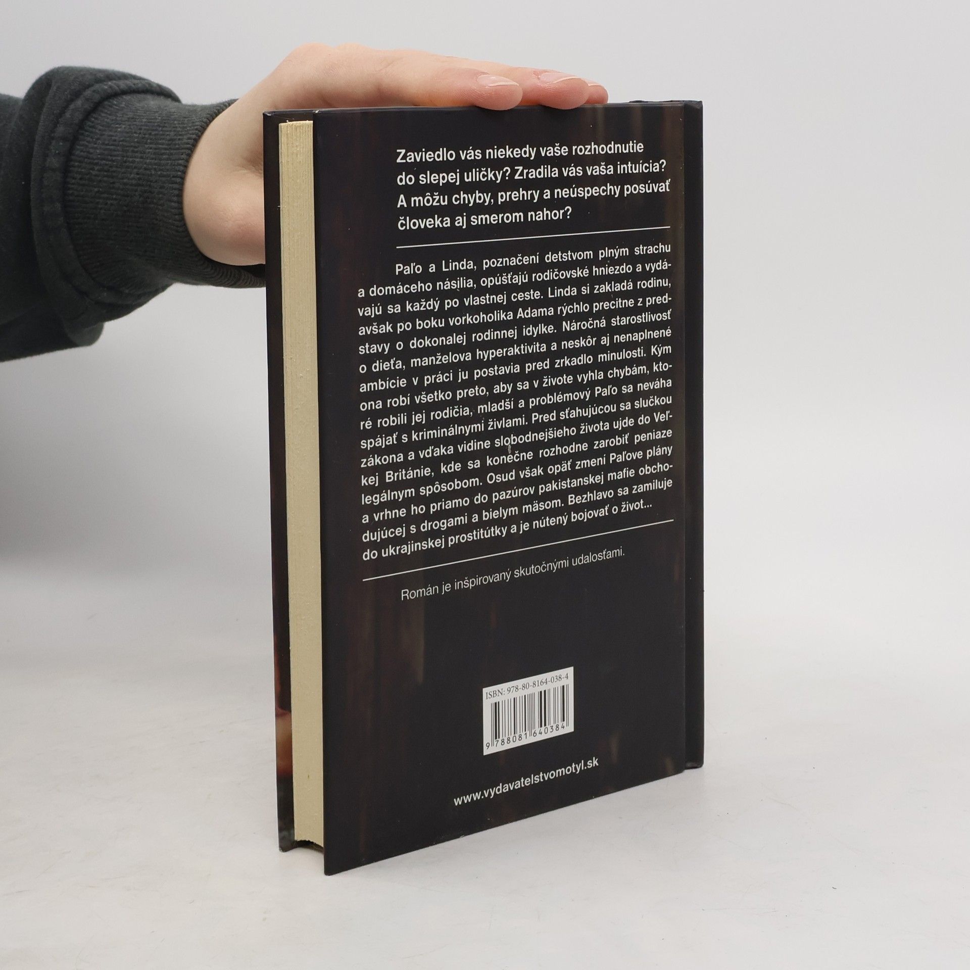 Zaviedlo vás niekedy vaše rozhodnutie do slepej uličky? Zradila vás vaša intuícia?A môžu chyby, prehry a neúspechy posúvať človeka aj smerom nahor? Paľo a Linda, poznačení detstvom plným strachu a domáceho násilia, opúšťajú rodičovské hniezdo a vydávajú sa každý po vlastnej ceste. Linda si zakladá rodinu, avšak po boku vorkoholika Adama rýchlo precitne z predstavy o dokonalej rodinnej idylke. Náročná starostlivosť o dieťa, manželova hyperaktivita a neskôr aj nenaplnené ambície v práci ju postavia pred zrkadlo minulosti. Kým ona robí všetko preto, aby sa v živote vyhla chybám, ktoré robili jej rodičia, mladší a problémový Paľo sa neváha spájať s kriminálnymi živlami. Pred sťahujúcou sa slučkou zákona a vďaka vidine slobodnejšieho života ujde do Veľkej Británie, kde sa konečne rozhodne zarobiť peniaze legálnym spôsobom. Osud však opäť zmení Paľove plány a vrhne ho priamo do pazúrov pakistanskej mafie obchodujúcej s drogami a bielym mäsom. Bezhlavo sa zamiluje do ukrajinskej prostitútky a je nútený bojovať o život... Román je inšpirovaný skutočnými udalosťami.