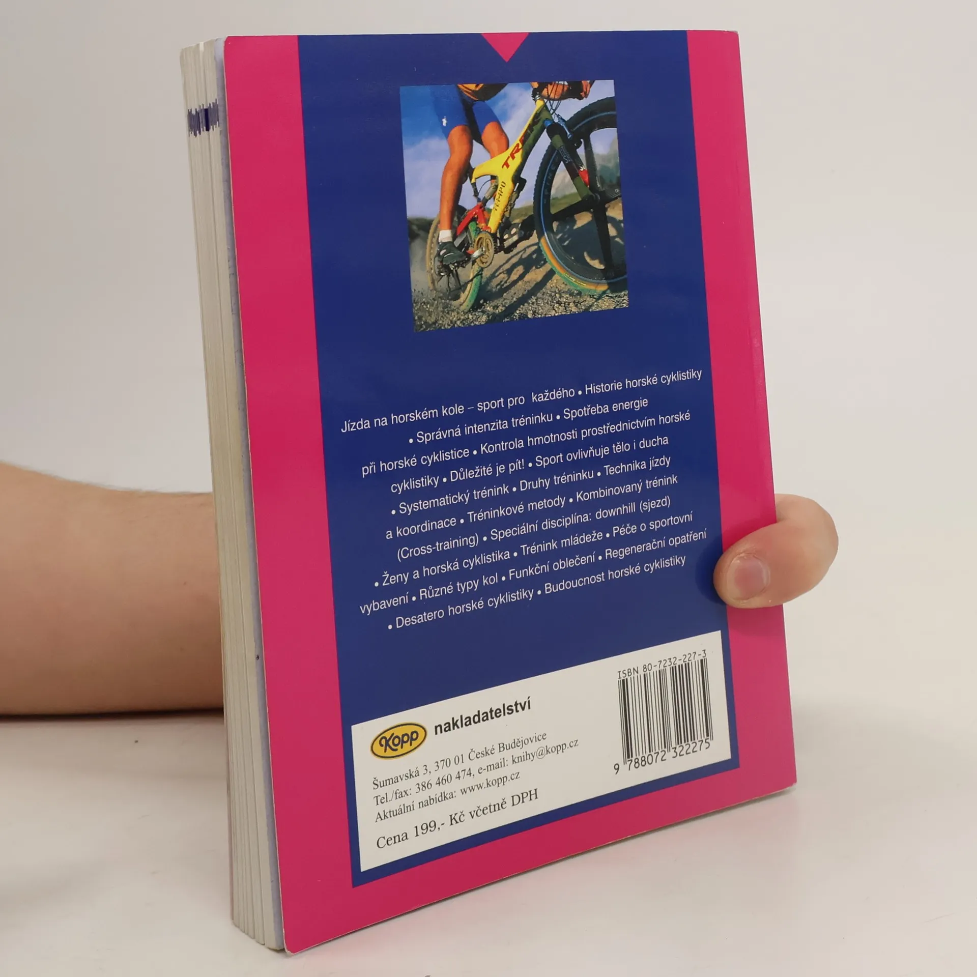 Jízda na horském kole je fenoménem současné doby, je to určitý životní styl. Autoři této knihy si kladou za cíl seznámit čtenáře s historií horské cyklistiky, moderními způsoby tréninku a jeho metodami, charakterizují jednotlivé disciplíny, zabývají se typy kol, oblečením a stravováním. Zvláště jméno jednoho z autorů, Thomase Frischknechta, legendy světové cyklistiky, mistra a vicemistra světa je zárukou nejlepších informací a poznatků. Kniha obsahuje desítky barevných obrázků, grafů a schémat, která názorně a zajímavě vysvětlují a doplňují informace, uvedené v knize.