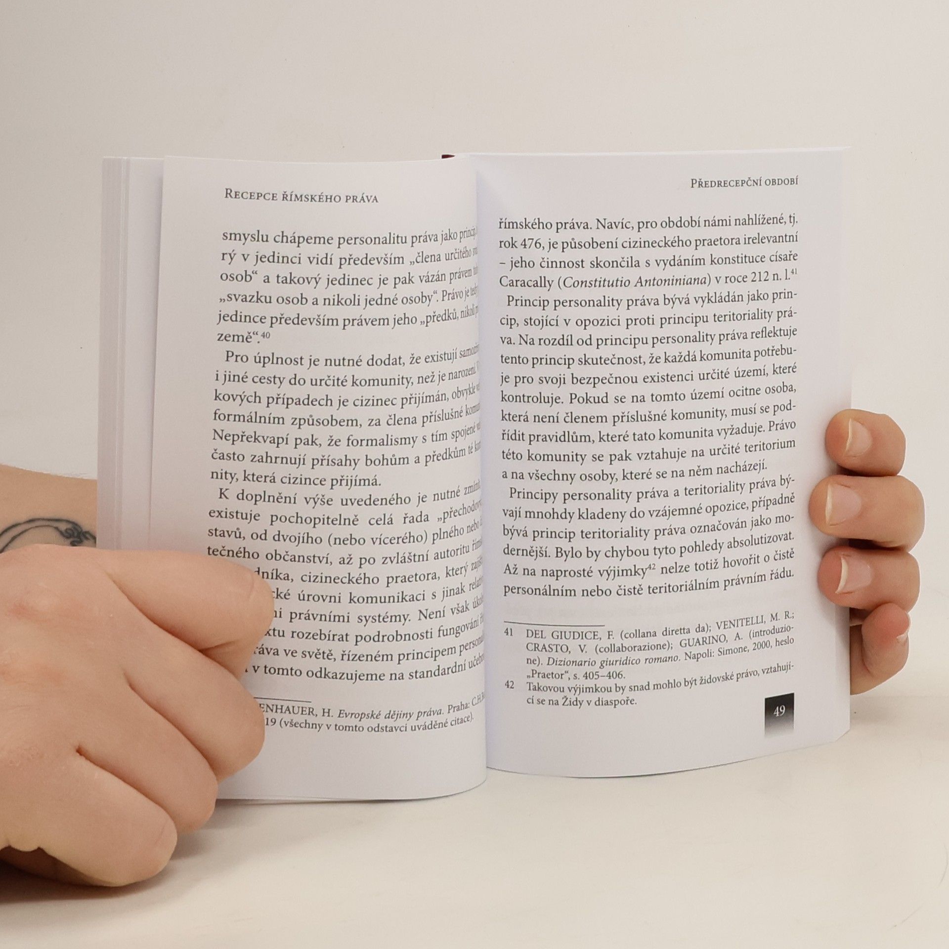 Publikace je učebním textem, přibližujícím postupné pronikání římskoprávní kultury do právního myšlení v kontinentální Evropě. Jde o proces, který v Evropě probíhal především v období od 11. až do konce 19. století. Učební text ale zasazuje proces recepce do kontextu. Obsahuje tudíž na jedné straně též informace o vývoji práva mezi pádem Západořímské říše a nástupem vlastní recepce (v souvislosti se vznikem první západoevropské univerzity v Bologni), na druhé straně i shrnutí vývoje právního myšlení v zrcadle římského práva od počátku 20. století. Jednotlivé kapitoly přibližují v první řadě více významů recepčního procesu, a dále nastiňují základní rysy rozkrývání římskoprávní matérie různými evropskými právními školami, v období jejich rozvoje od 11. století. Samostatné kapitoly pak jsou věnovány působení římského práva v zemích České koruny a v Uhersku s nastíněním recentního vývoje v Československu a v České republice, resp. na Slovensku. Publikace je doplněním předepsané literatury pro předmět Římské právo a základy novodobého práva soukromého vyučovaného na Právnické fakultě Univerzity Karlovy v Praze.