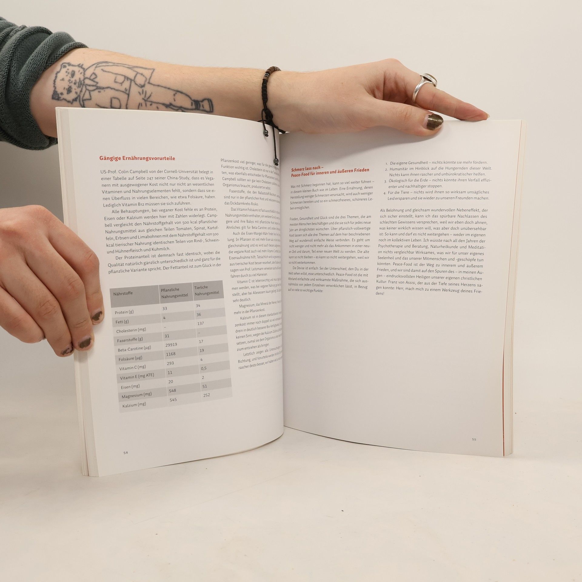 Das Ernährungsprogramm „Peace Food - Schmerzfrei durch richtige Ernährung“ ist die ideale Unterstützung und Ergänzung zum PAINFREE-Übungsprogramm. „Die Spannweite der hier möglichen Lebensverbesserungen reicht von wachsender Gesundheit über bessere Ausstrahlung in einem schlanken, fitten Körper bis zu zunehmender Eigenverantwortung, dem Verlust von Schuldgefühlen und wachsendem inneren und äußeren Frieden […] Peace-Food steht für vollwertige pflanzliche Ernährung und ist wissenschaftlich durch viele Studien untermauert. Es ist viel mehr als vegan. […] Peace-Food ersetzt durch vollwertige pflanzliche Alternativen jene Mischkost, die nachweislich die gefährlichsten und verbreitetsten Krankheitsbilder unserer Zeit fördert, wie Krebs und Herzprobleme, aber auch die gesamte Bandbreite der Zivilisationssyndrome von Allergien über beiderlei Diabetes bis zu Osteoporose und sogar Karies.“ (Ruediger Dahlke)