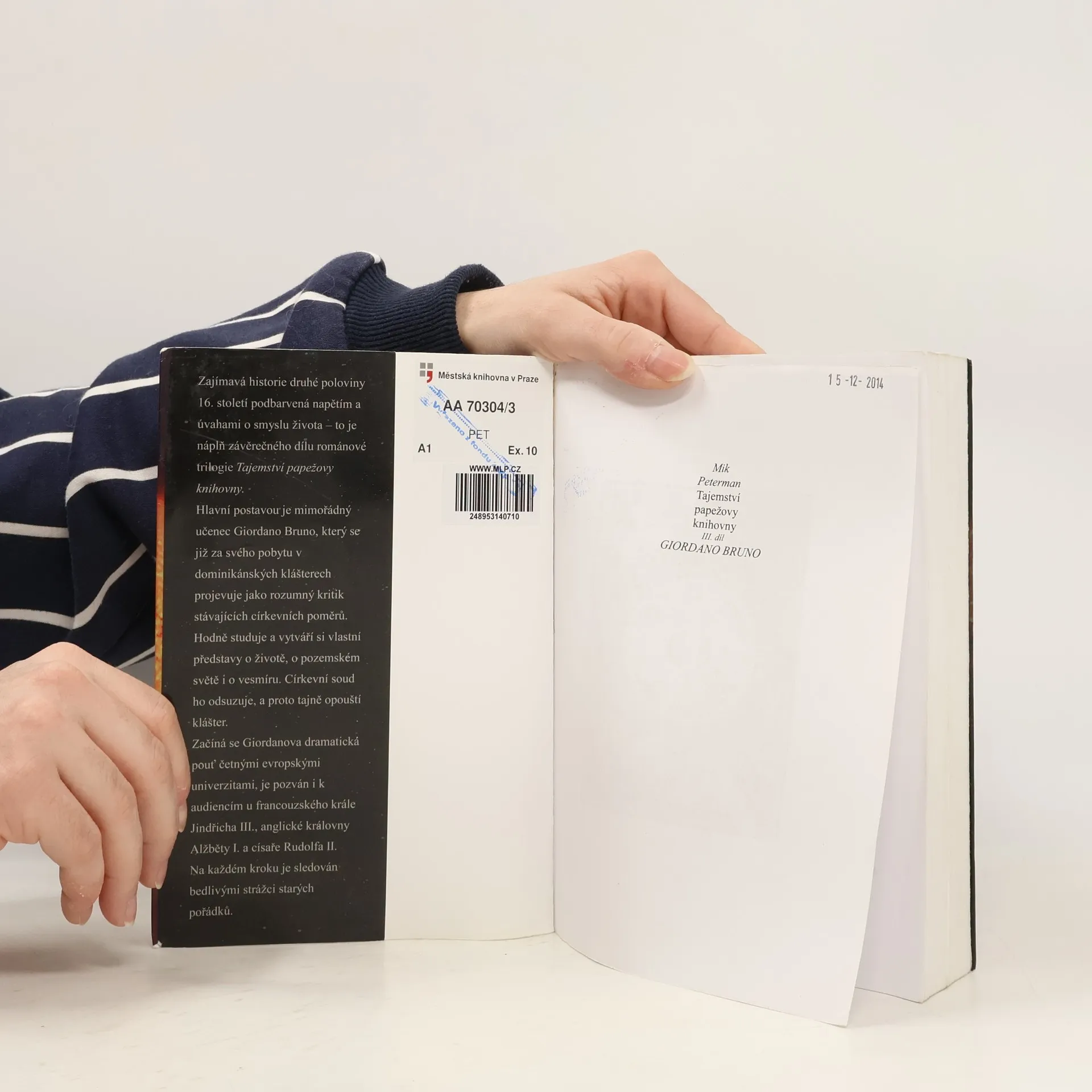 Zajímavá historie druhé poloviny 16. století podbarvená napětím a úvahami o smyslu života – to je hlavní náplň závěrečného dílu trilogie Tajemství papežovy knihovny. Mladý Giordano Bruno, ústřední postava románu, zbytečně moc čte a přemýšlí. Přestává být poslušným dominikánským mnichem a za své názory je obžalován ze 130 porušení církevních pořádků. Aby se vyhnul trestu, tajně opouští římský klášter. Začíná se jeho životní pouť četnými evropskými univerzitami, je pozván dokonce i k audienci u francouzského krále Jindřicha III., anglické královny Alžběty I. a císaře Rudolfa II. Na své cestě získává množství poznatků z učených knih ale i z tajných pramenů. Snaha po vědění však přivolává zradu. Giordano Bruno končí svou badatelskou pouť v inkvizičním vězení benátské republiky. Papežský stolec nepřipustí, aby tento mimořádný učenec zůstal dlouho i se svým tajemstvím mimo jeho vliv. Dramaticky si na Benátčanech vynutí vydání Giordana Bruna do Vatikánu, aby dalších dlouhých sedm let mohl spolu s několika kardinály papežské kurie připravovat Reformu nebes...