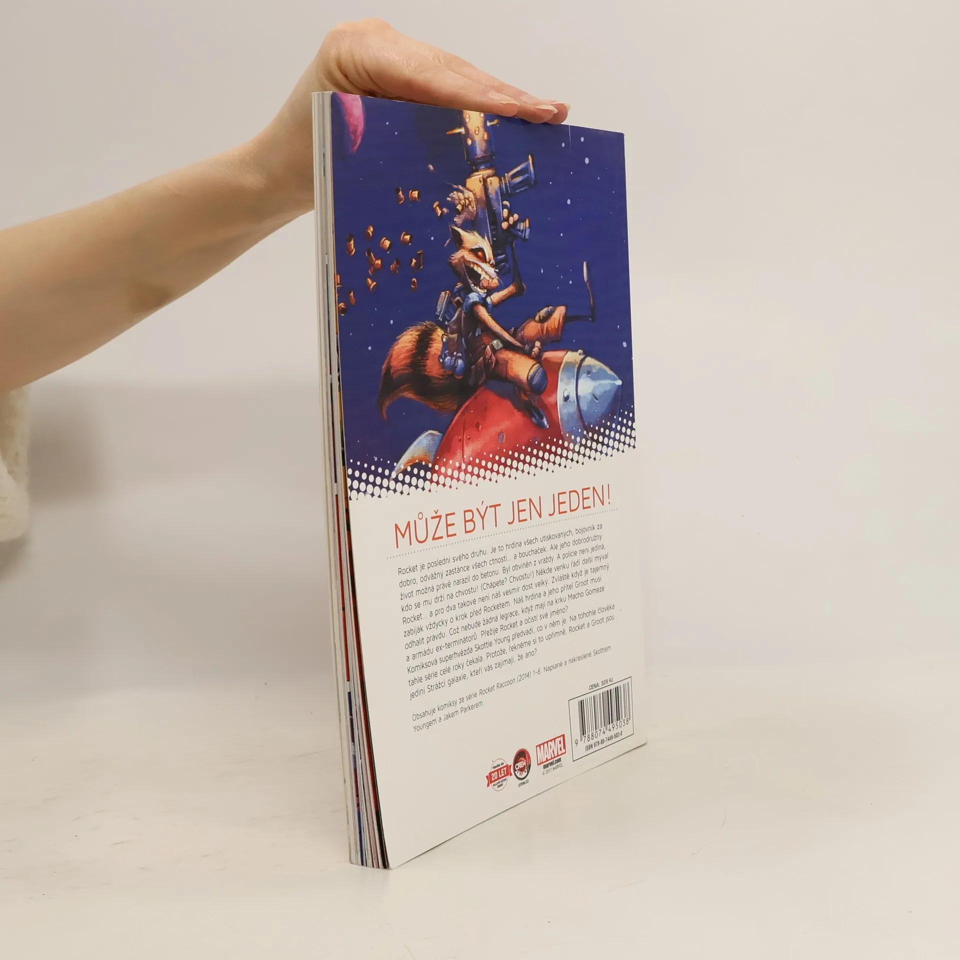 Rocket je poslední svého druhu. Je to hrdina všech utiskovaných, bojovník za dobro, odvážný zastánce všech ctností... a bouchaček. Ale jeho dobrodružný život možná právě narazil do betonu. Byl obviněn z vraždy. A policie není jediná, kdo se mu drží na chvostu! (Chápete? Chvostu!) Někde venku řádí další mýval Rocket... a pro dva takové není náš vesmír dost velký. Zvláště když je tajemný zabiják vždycky o krok před Rocketem. Náš hrdina a jeho přítel Groot musí odhalit pravdu. Což nebude žádná legrace, když mají na krku Macho Gomeze a armády ex-terminátorů. Přežije Rocket a očistí své jméno? Komiksová superhvězda Skottie Young předvádí, co v něm je. Na tohohle člověka tahle série celé roky čekala. Protože, řekneme si to upřímně, Rocket a Groot jsou jediní Strážci galaxie, kteří vás zajímají, že ano? Zdroj: obal knihy
