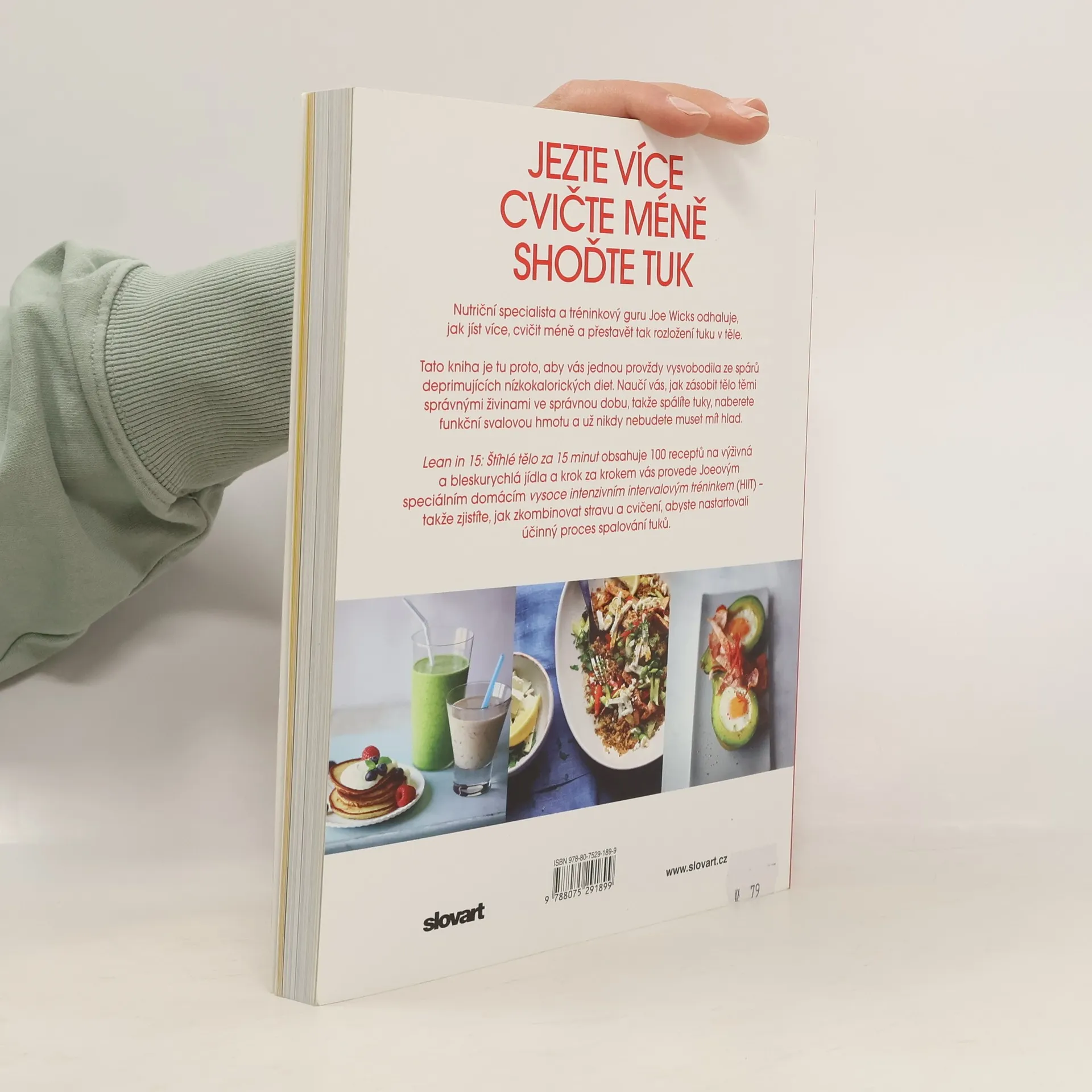 Kniha populárního kouče Joea Wickse Lean in 15 se v Británii už dlouho drží na žebříčku nejčtenějších titulů. Stovka receptů na chutná jídla, která lze připravit za pouhých 15 minut, ve spojení s 15minutovým cvičebním programem vás naučí, jak dopřát tělu to, co potřebuje, a jak to udělat v pravou chvíli. Stačí totiž díky cvičení nastartovat přeměnu tuku na svaly, a nejen že není třeba hladovět, je dokonce možné jíst více. Kniha je přehledná, plná barevných fotogra?í, a díky autorovu originálnímu stylu také velice čtivá a zábavná.