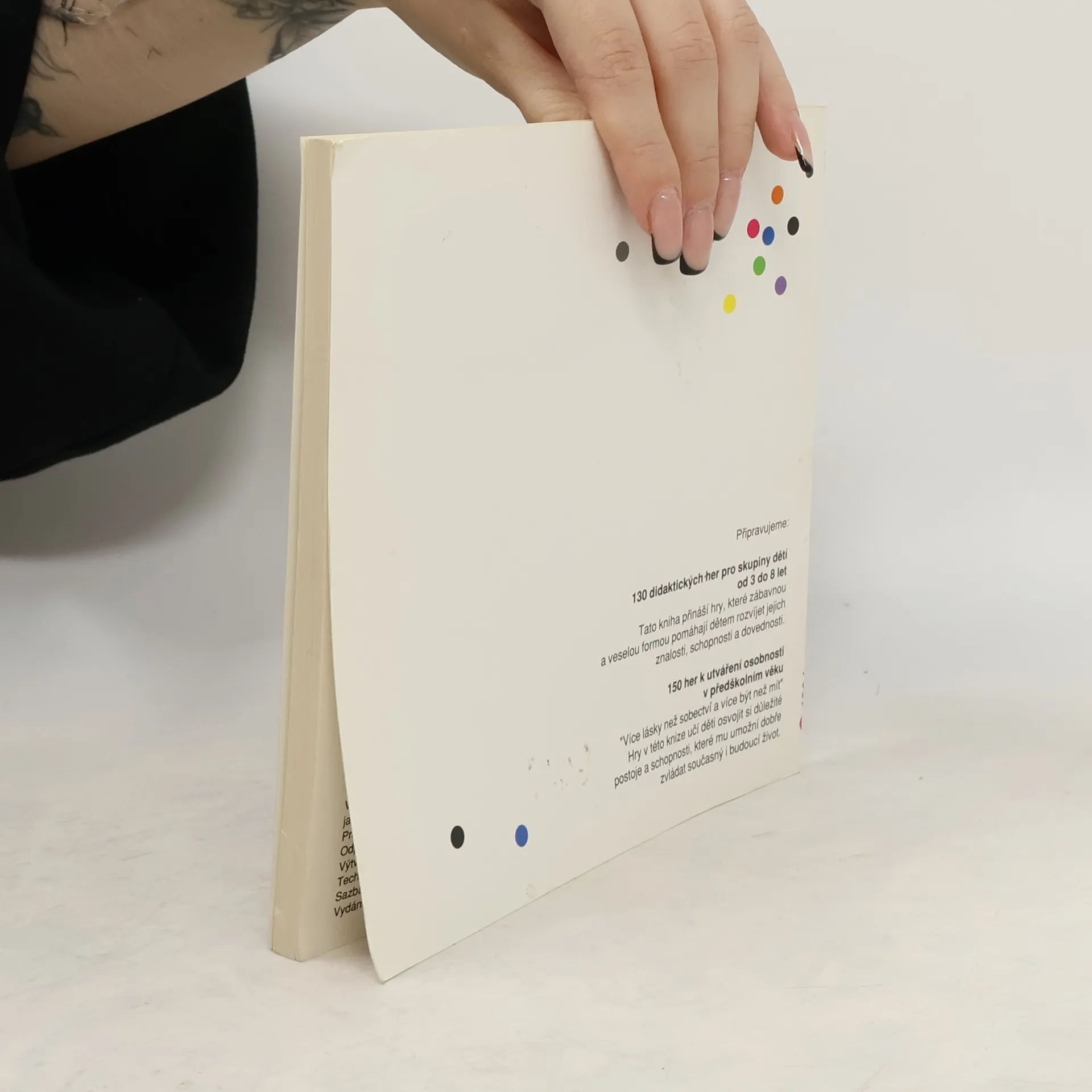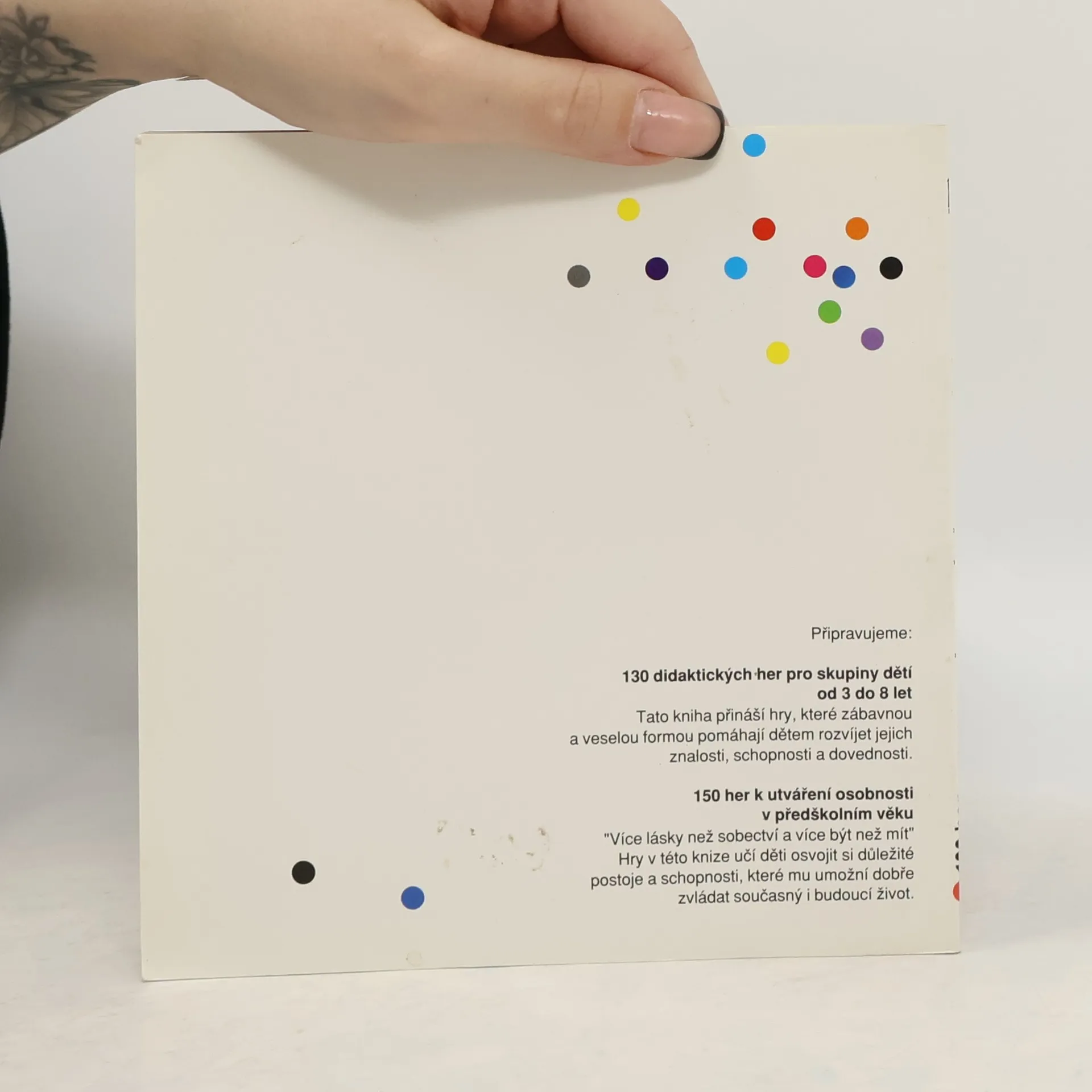 Tvořivá hra se vyznačuje velkou variabilitou. Kniha přináší VI. skupin her: Kreslení a malování; tvořivé hry s papírem; hry s materiálem, který je po ruce; hry s odpadovým materiálem; hry s mluveným slovem; hudba, divadlo, pohybové hry.