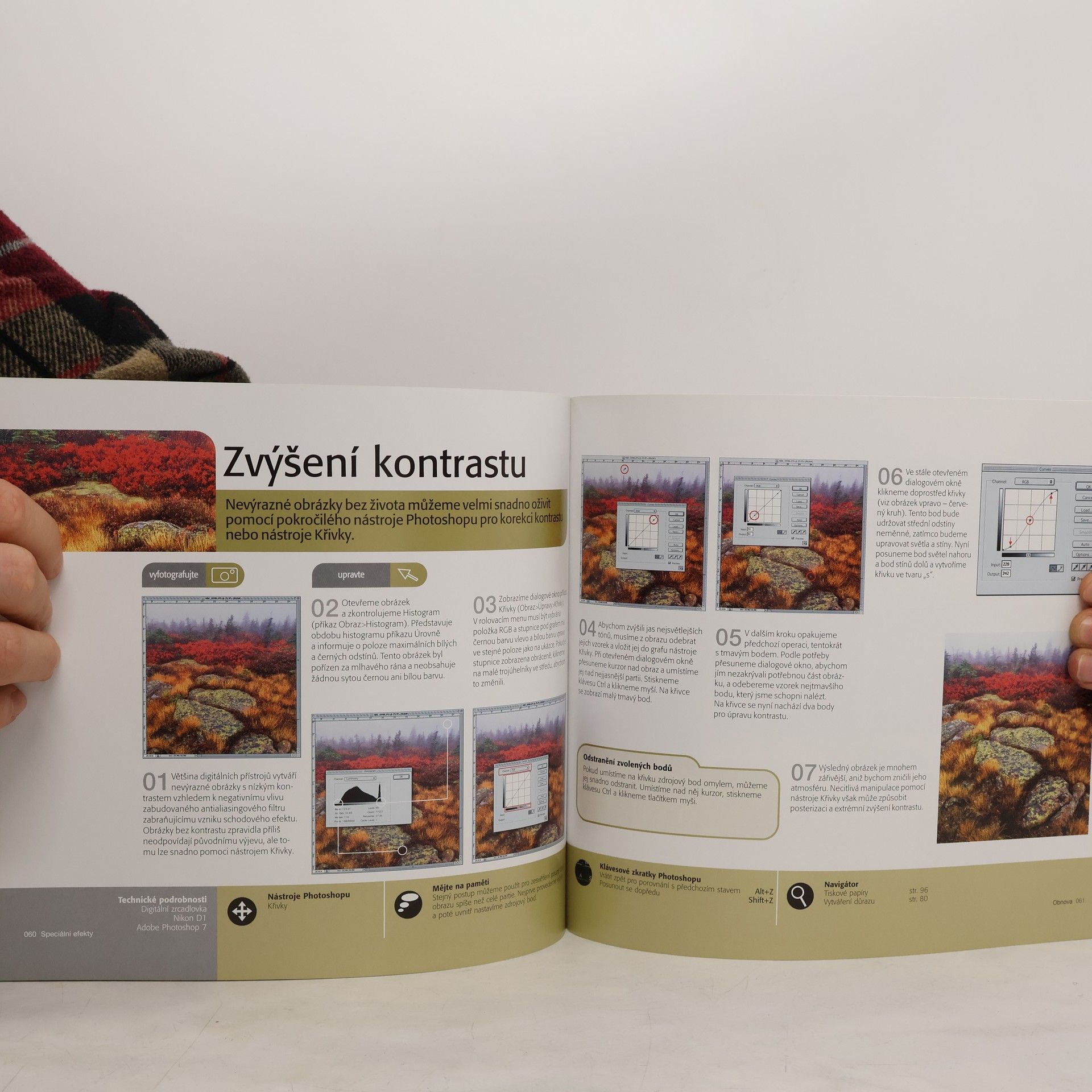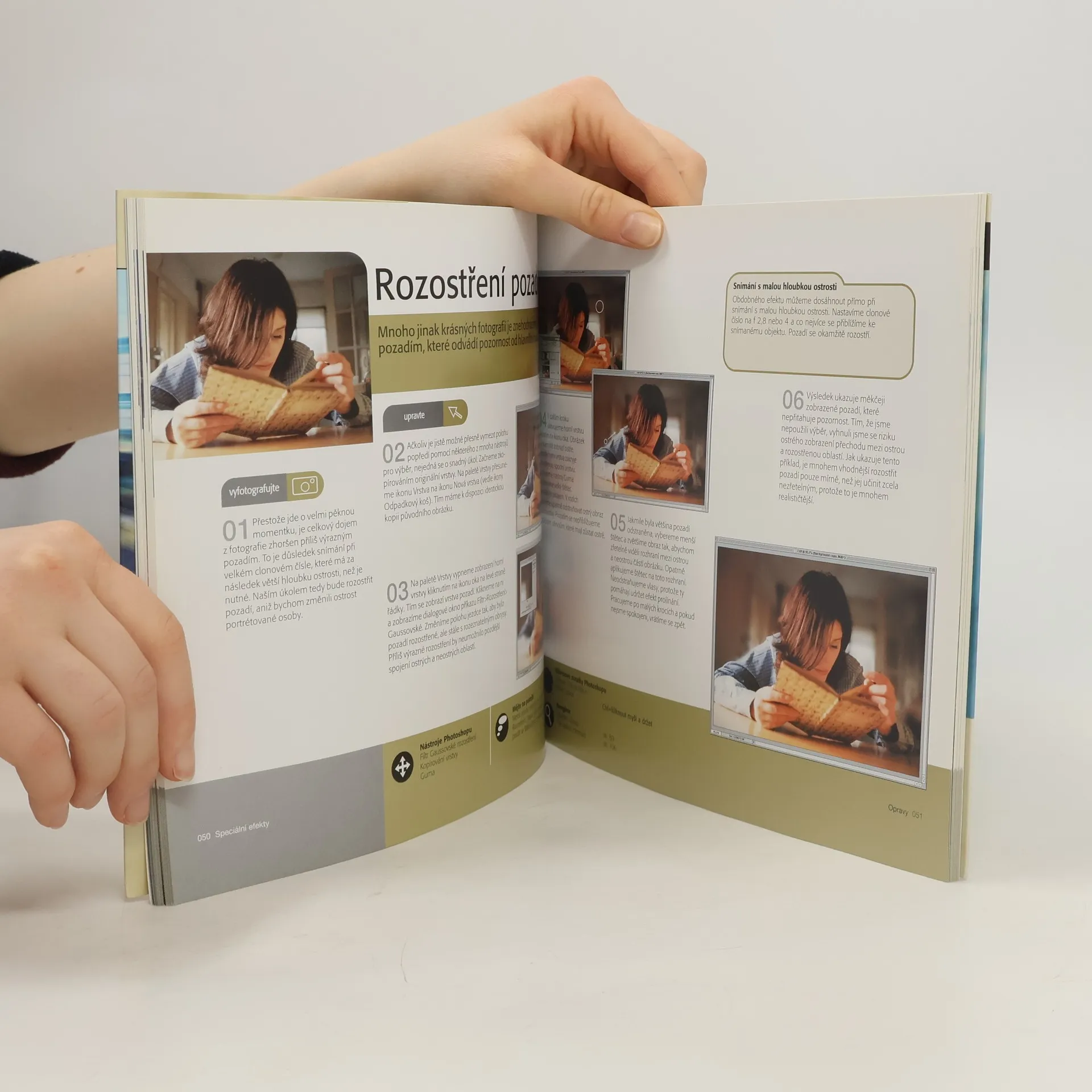 Speciální efekty, retušování a obnova - perfektní pomůcka pro všechny, kdo chtějí zkoušet nekonečné možnosti digitální technologie. Kniha se snaží názorným a jednoduchým způsobem přiblížit jednotlivé techniky úprav obrazu. Zabývá se základními úpravami, jako je například odstranění škrábanců nebo korigování barev, ale i kreativnějším editováním, jako je experimentování s pozadím nebo slučování obrazů za účelem zlepšení kompozice. Text nepřetížený odbornými výrazy a podrobný popis jednotlivých kroků činí z této knihy nepostradatelného průvodce pro ty autory, kteří se neustále snaží zdokonalovat svou práci a dovoluje fotografům plně využít využívat výhod digitální technologie.