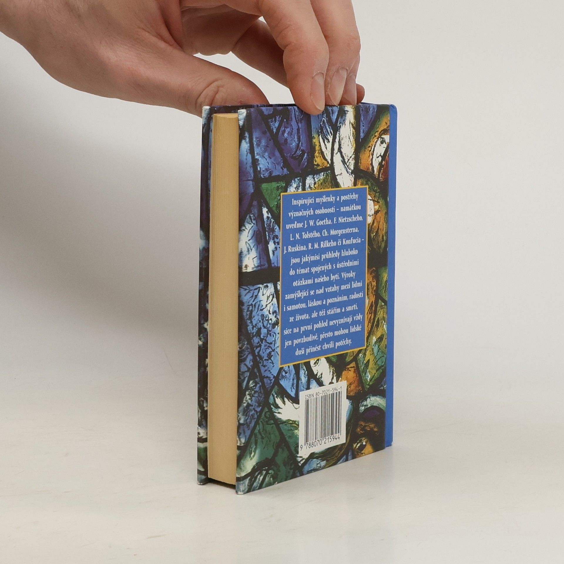 Inspirující myšlenky a postřehy význačných osobností - namátkou uveďme J. W. Goetha, F. Nietzscheho, L. N. Tolstého, Ch. Morgensterna, J. Ruskina, R. M. Rilkeho či Konfucia - jsou jakýmisi průhledy hluboko do témat spojených s ústředními otázkami našeho bytí. Výroky zamýšlející se nad vztahy mezi lidmi i samotou, láskou a poznáním, radostí ze života, ale též stářím a smrtí, sice na první pohled nevyznívají vždy jen povzbudivě, přesto mohou lidské duši přinést chvíli potěchy.
