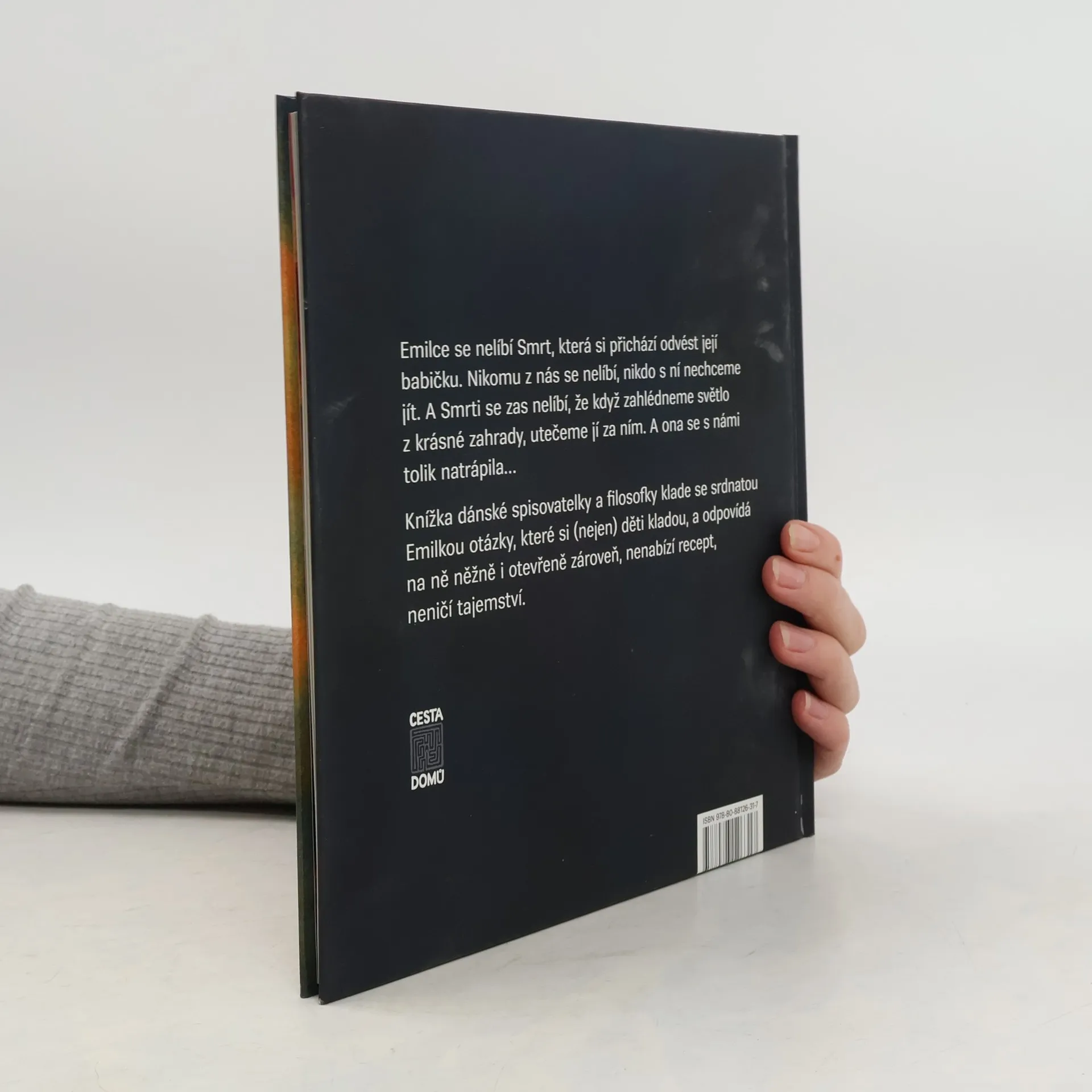 Emilce se nelíbí Smrt, která si přichází odvést její babičku. Nikomu z nás se nelíbí, nikdo s ní nechceme jít. A Smrti se zas nelíbí, že když zahlédneme světlo z krásné zahrady, utečeme jí za ním. A ona se s námi tolik natrápila… Knížka dánské spisovatelky klade se srdnatou Emilkou otázky, které si (nejen) děti kladou, a odpovídá na ně něžně i otevřeně zároveň, nenabízí recept, neničí tajemství.
