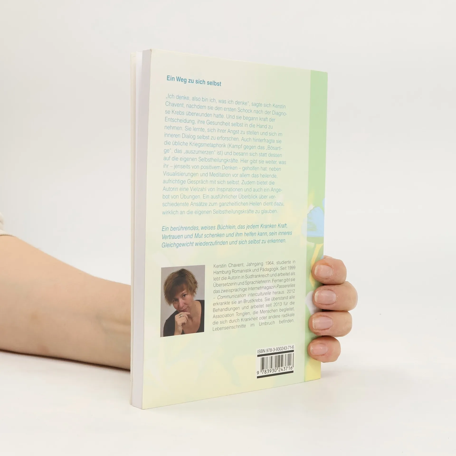 „Ich denke, also bin ich, was ich denke“, sagte sich Kerstin Chavent, nachdem sie den ersten Schock nach der Diagnose Krebs überwunden hatte. Und sie begann kraft der Entscheidung, ihre Gesundheit selbst in die Hand zu nehmen. Sie lernte, sich ihrer Angst zu stellen und sich im inneren Dialog selbst zu erforschen. Auch hinterfragte sie die übliche Kriegsmetaphorik (Kampf gegen das „Bösartige“, das „auszumerzen“ ist) und besann sich statt dessen auf die eigenen Selbstheilungkräfte. Hier gibt sie weiter, was ihr – jenseits von positivem Denken - geholfen hat: neben Visualisierungen und Meditation vor allem das heilende, aufrichtige Gespräch mit sich selbst. Zudem bietet die Autorin eine Vielzahl von Inspirationen und auch ein Angebot von Übungen. Ein ausführlicher Überblick über verschiedenste Ansätze zum ganzheitlichen Heilen dient dazu, wirklich an die eigenen Selbstheilungskräfte zu glauben.