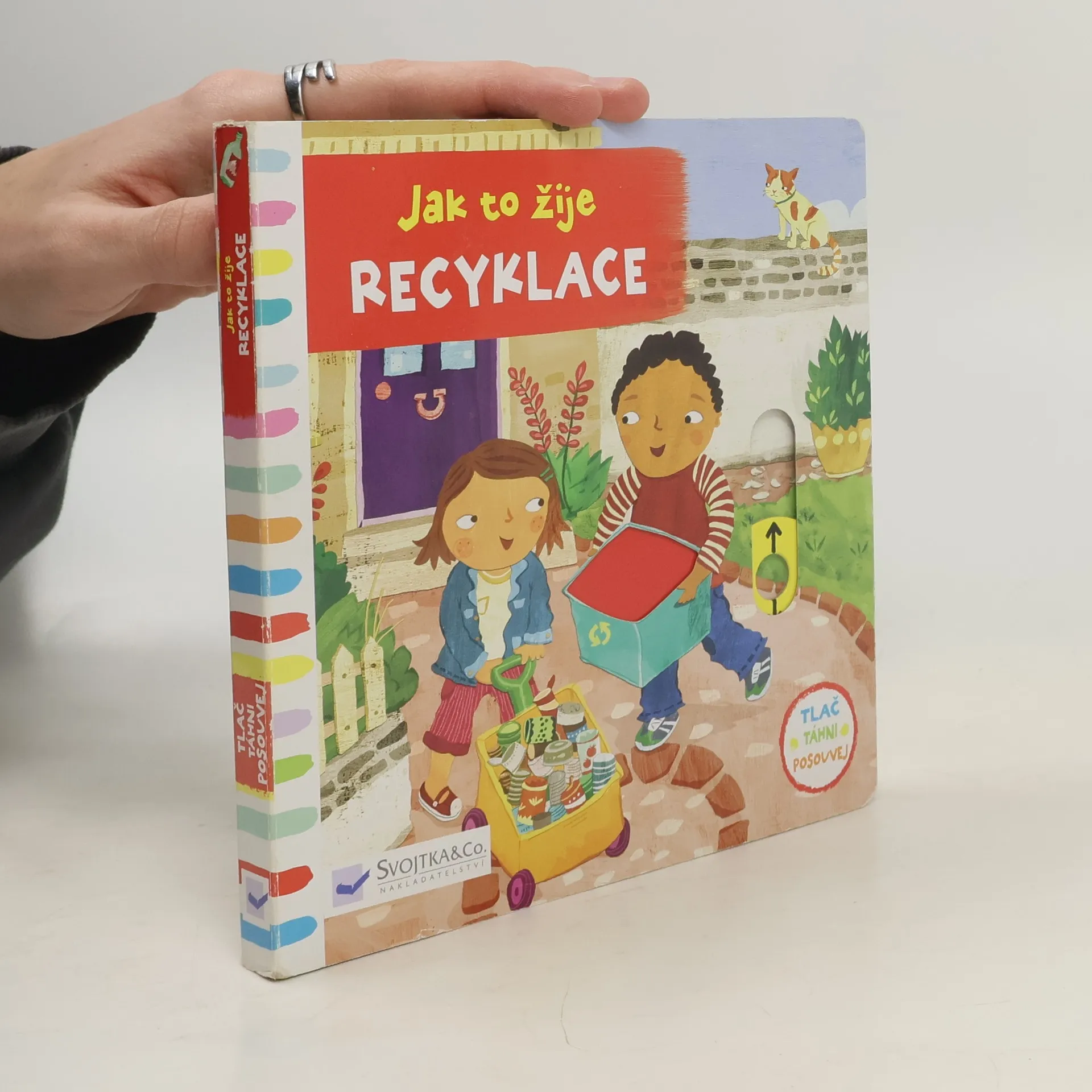 Plasty, papír, sklo... Co všechno se dá recyklovat? A do jakého kontejneru to patří? Proč bychom neměli při čištění zubů nechávat téct vodu? Toto veršované leporelo naučí děti od jednoho roku hravou formou základy životního stylu šetrného k přírodě. Má pevné stránky s posuvnými a otočnými prvky, a tak si dítě při prohlížení knížky současně procvičí jemnou motoriku. Na jednotlivých stránkách může posouvat, tahat, otáčet. Objeví nové věci, o kterých si můžete společně popovídat!