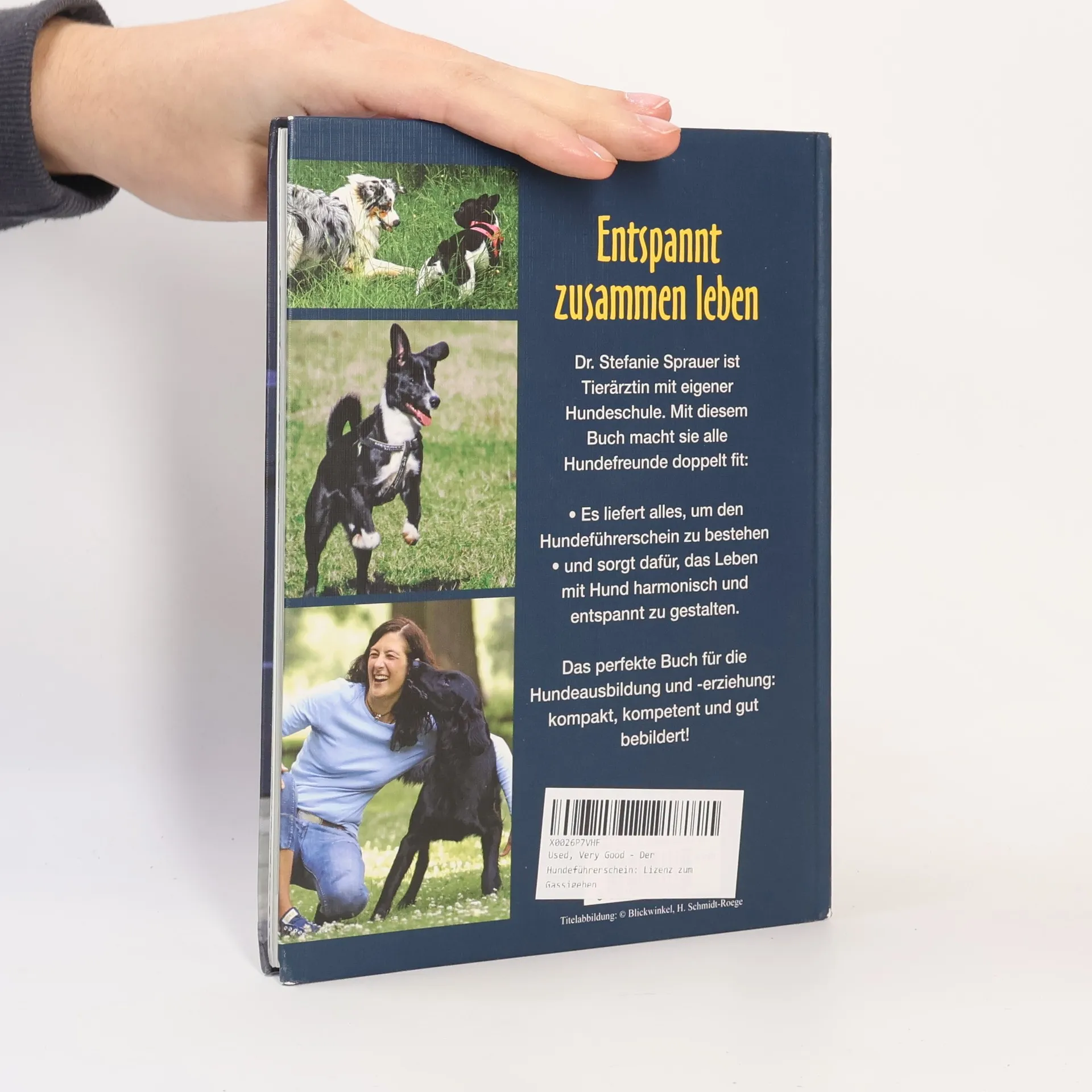 Entspannt zusammen leben Der Hundeführerschein ist Ländersache und daher von Bundesland zu Bundesland unterschiedlich geregelt. Aber vieles, was ein Hundehalter wissen muss, gilt für alle: Die Tiere müssen, je nach Bundesland, haftpflichtversichert sein, einen Identifikationschip tragen und eventuell in einem zentralen Register gemeldet werden. Vor allem aber soll jeder, der sich einen Hund zulegen will, eine Tauglichkeitsprüfung ablegen - in Theorie, Praxis oder einer Kombination aus beidem - unabhängig davon, ob es sich beim neuen Haustier um einen Mastiff oder einen Rauhaardackel handelt. Die Autorin, Tierärztin mit eigener Hundeschule, macht mit diesem Buch alle Hundefreunde fit, nicht nur, um den Hundeführerschein zu bestehen, sondern auch, um das eigene Leben mit dem Hund gemeinsam zukunftsorientiert und vor allem harmonisch und entspannt zu gestalten. Ausstattung: mit Farbfotos