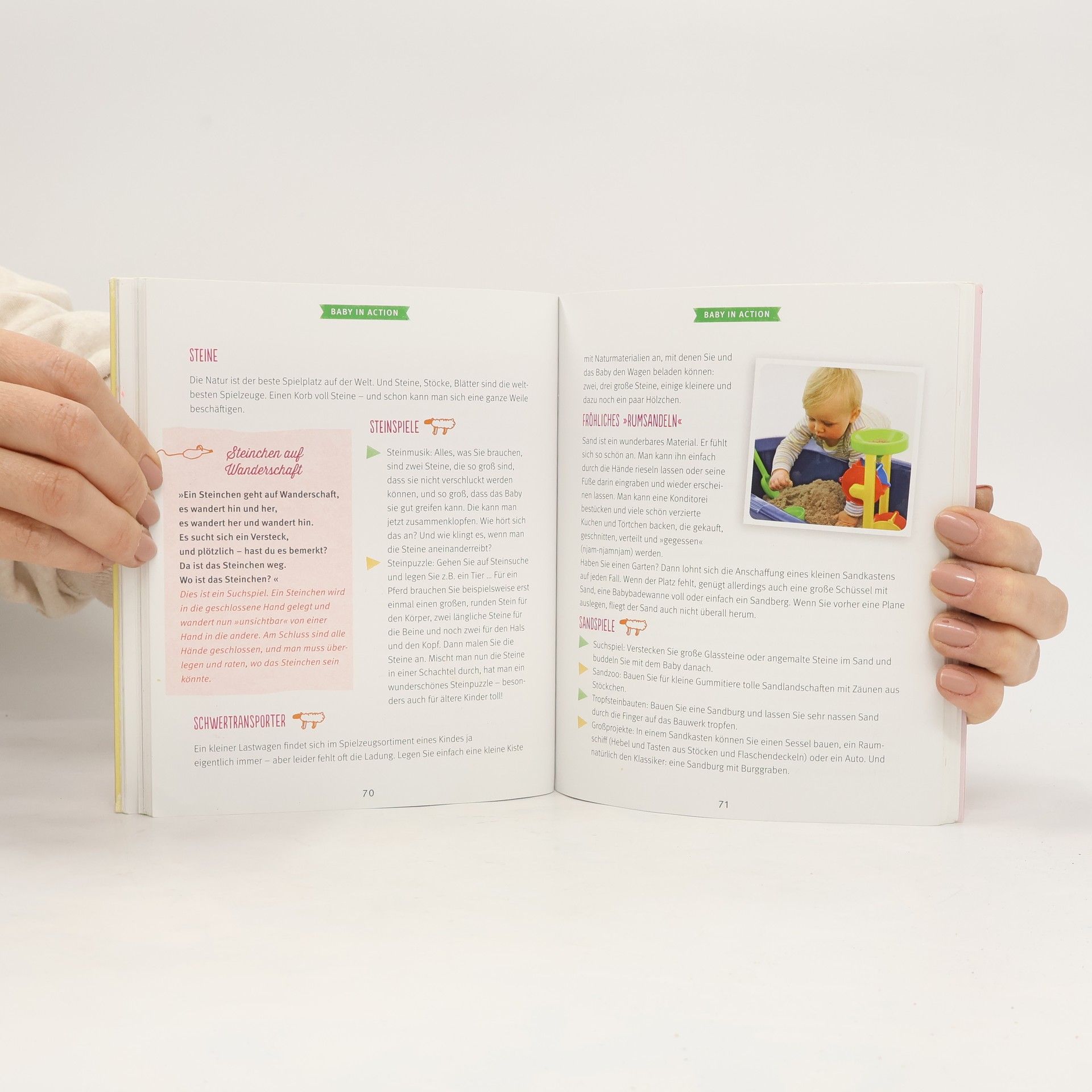 Die ersten gemeinsamen Spiele und Reime sind für Babys und Mütter bezaubernde Momente, die ein Leben lang in Erinnerung bleiben. Doch vielen Müttern fehlen Ideen und Anleitung für Babyspiele, die Spaß machen. Dieses liebevoll gestaltete Buch bietet viele kreative Anregungen - für jede Entwicklungsphase des Babys bis zum 2. Lebensjahr. Freuen Sie sich auf eine Schatzkiste voller Spielideen, die man nicht kaufen muss. Sie werden mit Dingen aus dem Haus einfach selbst gebastelt und gestaltet. Erleben Sie eine zärtliche und fröhliche Zeit mit Spielen, Liedern und Reimen, zu denen Sie nichts brauchen außer Ihre Hände und ihre Stimmen.