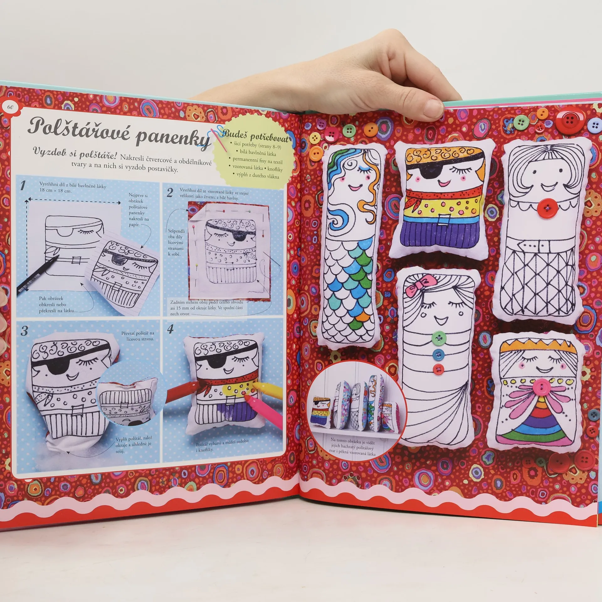 Jak uplést, ušít a vytvořit nádherné panenky krok za krokem Popusťte uzdu tvůrčí fantazii s těmito krásnými panenkami! Seznamte se s Lotkou a jejími kamarády a šijte, pleťte a vyšívejte garderobu plnou krásného oblečení, do kterého je pak můžete obléknout. S pomocí běžně dostupných materiálů a potřeb si vytvoříte nejrůznější látkové i pletené panenky – Levandulky, Lotynky, mořské víly a spousty dalších. A kromě panenek si můžete vyrobit třeba pletené postavičky superhrdinů, ale i několik praktických výrobků. Podrobné a srozumitelné návody doplňují výstižné fotografie jednotlivých kroků. Součástí knihy jsou i střihy výrobků a základní přehled používaných stehů a vzorů.