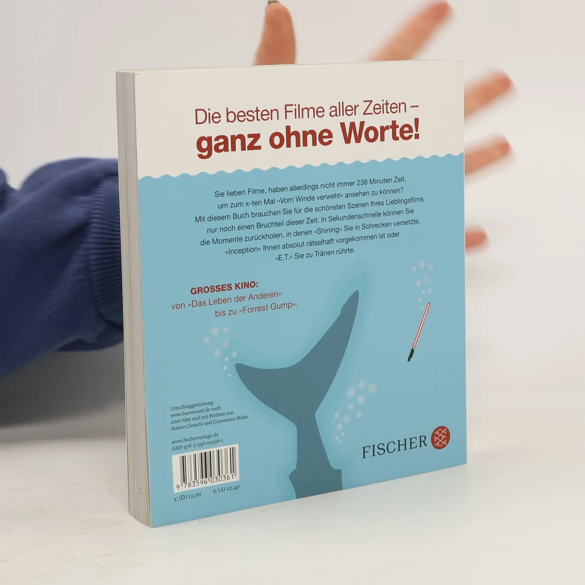 ***Die besten Filme aller Zeiten – ganz ohne Worte*** Klassiker, Blockbuster und Kultfilme perfekt und pointiert in Szene gesetzt! Diese einmalige Kombination aus Humor, stylisher Optik und Ratespaß garantiert über 150 großartige Kinomomente von »Das Leben der Anderen« bis zu »Forrest Gump«. Sie lieben Filme, haben allerdings nicht immer Zeit, die 238 Minuten aufzubringen, um zum x-ten Mal »Vom Winde verweht« ansehen zu können? Wir haben nun die Lösung für Sie: »Der ganze Filme in fünf Sekunden«! Mit diesem Buch brauchen Sie zum erneuten Durchleben und Durchleiden der schönsten Szenen Ihres Lieblingsfilms nur noch einen Bruchteil dieser Zeit: Die Grafikdesigner Matteo Civaschi und Gianmarco Milesi haben alle überflüssigen Teile entfernt und präsentieren Ihnen das Wichtigste mit Hilfe grafischer Icons! In Sekundenschnelle können Sie die Momente wiedererleben, in denen »E. T.« Sie zu Tränen rührte, »Shining« Sie in Schrecken versetzte oder als Ihnen »Inception« absolut rätselhaft vorgekommen ist. Mit Schindlers Liste, Jurassic Park, Der Herr der Ringe, Pulp Fiction, Lola rennt, Shining, Manche mögen´s heiß, The King´s Speech, Harry Potter, Alien, Dirty Dancing, Das Schweigen der Lämmer, Taxi Driver, Rocky, Der König der Löwen, Findet Nemo, Billy Elliot, Easy Rider, Das Boot, Metropolis, Die Rocky Horror Picture Show, Django Unchained, Casablanca.