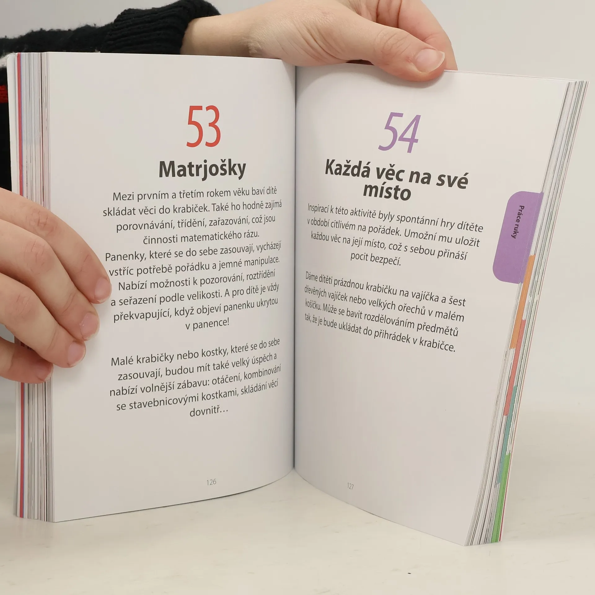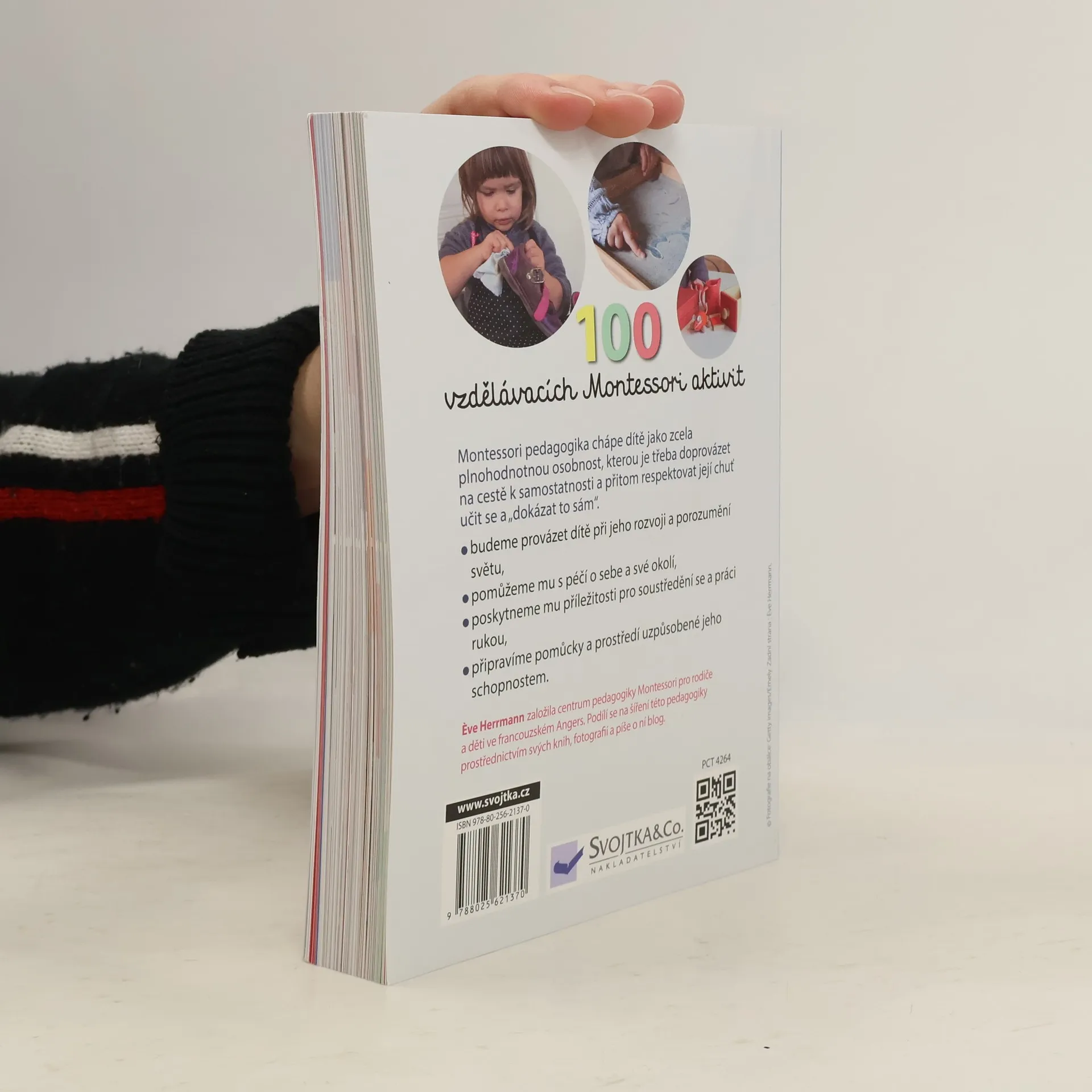 Objevujte s dětmi svět! Pomocí jednoduchých aktivit, které lze přizpůsobit konkrétním potřebám dítěte, se batole naučí vše o sobě i okolním světě. Tato kniha nabízí 100 aktivit, vycházejících z principů pedagogiky Montessori a určených dětem od 18 měsíců. Prostřednictvím jednoduchých úkolů se děti přirozenou formou naučí praktické dovednosti jako oblékání, hygienické návyky a jednoduchou pomoc v domácnosti. Vedle těchto každodenních činností si děti procvičí i smyslové vnímání, začnou rozvíjet jemnou motoriku a seznámí se s okolním světem. Tyto aktivity jim pomáhají objevovat a pozorovat svět a uspokojovat jejich nekonečnou zvídavost. Postupujte tak, jak dítě samo chce, přizpůsobujte je situaci i rytmu, který vyhovuje dítěti. Objevujte svět společně se svými dětmi!