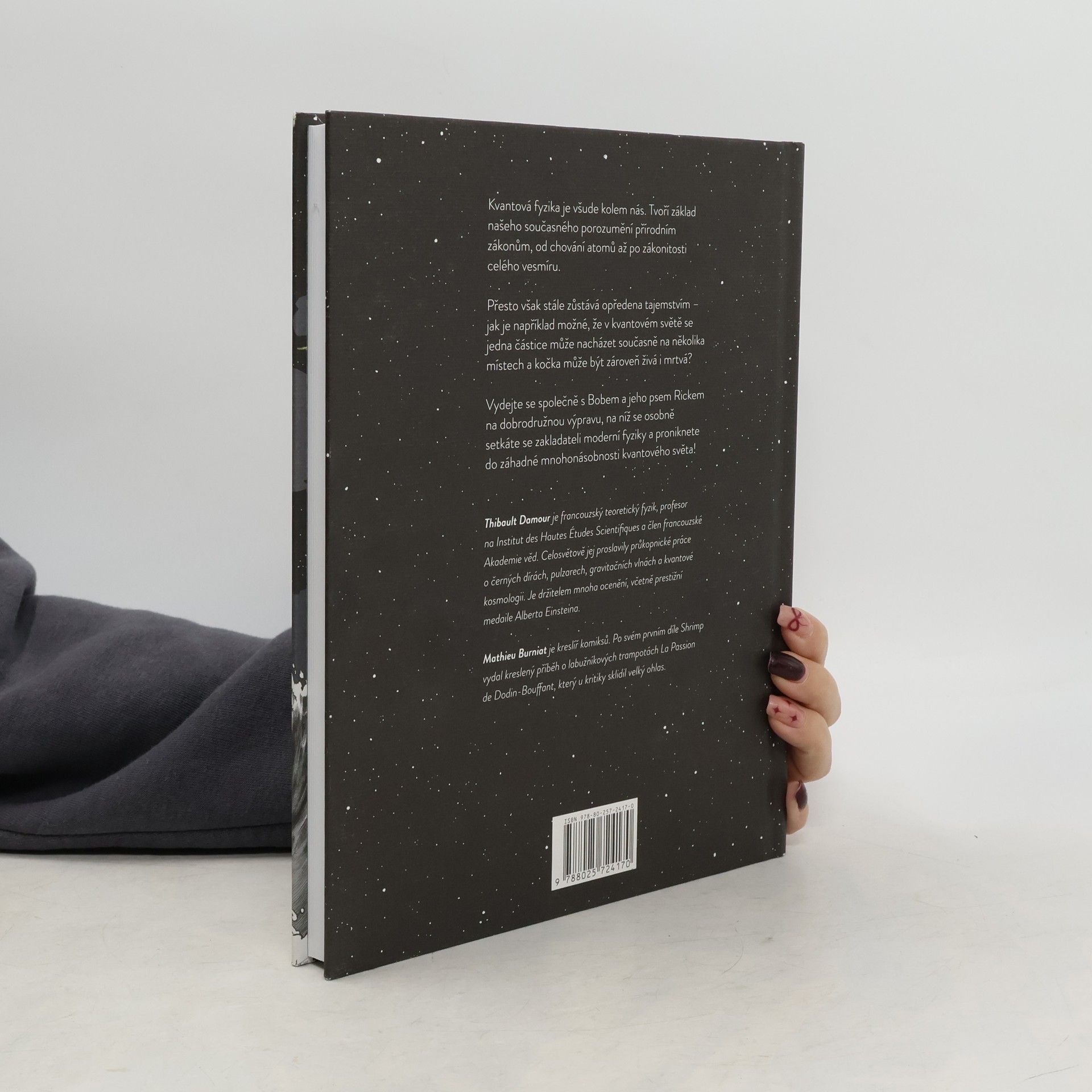 Je tu komiks, který vám objasní základy kvantové fyziky! Vydejte se společně s dobrodruhem Bobem a jeho psem Rickem na výpravu po záhadách kvantového světa! Kvantová fyzika je přítomná ve všem, co nás obklopuje – od obřích galaxií po nepostřehnutelně drobné atomy –, avšak její poznatky o světě kolem nás se výrazně liší od toho, co obyčejně zažíváme a pozorujeme. Jak je například možné, že v kvantovém světě se částice mohou nacházet současně na několika místech a kočka může být zároveň živá i mrtvá? Jak s tím souvisí kostkový cukr, mořské vlny či Bůh, který (ne)hraje v kostky? A jak na to všechno vědci vůbec přišli? Základní principy kvantové fyziky vám v kresleném příběhu objasní sami zakladatelé a nejvýznamnější teoretici tohoto oboru v čele s Planckem, Einsteinem, de Brogliem, Heisenbergem nebo Schrödingerem. Autorem knihy je Thibault Damour, francouzský teoretický fyzik, člen Akademie věd a držitel mnoha významných ocenění. O výtvarnou stránku se postaral známý belgický komiksový kreslíř Mathieu Burniat.