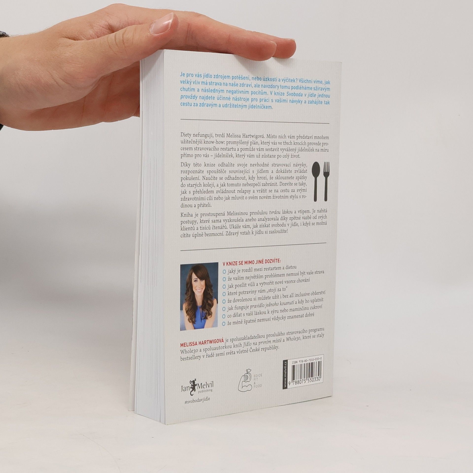 Diety nefungují, tvrdí Melissa Hartwigová, a v této knize nenajdete žádný univerzální jídelníček. Místo toho autorka představuje užitečný plán, který vás ve třech krocích provede sestavením zdravého a vyváženého jídelníčku na míru, který bude trvale udržitelný po zbytek života. Stravovací restart typu Whole30 může být prvním krokem. V knize najdete nástroje pro práci s návyky: zvládání pokušení, uvědomění si špatných návyků a rozpoznání spouštěčů souvisejících s jídlem dříve, než se aktivují. Naučíte se identifikovat pět základních situací, kdy hrozí návrat k nezdravým návykům, a vytvoříte si plán, jak se jim postavit. Dozvíte se, jak efektivně zvládnout uklouznutí a vrátit se na cestu za svými zdravotními cíli. Autorka také popisuje taktiky, jak komunikovat o novém zdravém životním stylu s rodinou a přáteli, což posílí vaše úsilí. Kniha je prostoupena Melissinou proslulou tvrdou láskou a nabitá postupy, které sama vyzkoušela nebo analyzovala prostřednictvím zpětné vazby svých klientů a čtenářů. Ukáže vám, jak získat svobodu v jídle, a naučí vás vypěstovat si zdravý vztah k jídlu, který si zasloužíte.