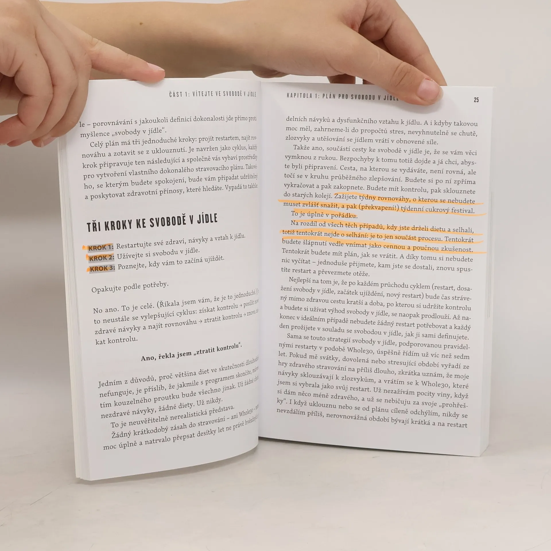 Diety nefungují, tvrdí Melissa Hartwigová, a v této knize nenajdete žádný univerzální jídelníček. Místo toho autorka představuje užitečný plán, který vás ve třech krocích provede sestavením zdravého a vyváženého jídelníčku na míru, který bude trvale udržitelný po zbytek života. Stravovací restart typu Whole30 může být prvním krokem. V knize najdete nástroje pro práci s návyky: zvládání pokušení, uvědomění si špatných návyků a rozpoznání spouštěčů souvisejících s jídlem dříve, než se aktivují. Naučíte se identifikovat pět základních situací, kdy hrozí návrat k nezdravým návykům, a vytvoříte si plán, jak se jim postavit. Dozvíte se, jak efektivně zvládnout uklouznutí a vrátit se na cestu za svými zdravotními cíli. Autorka také popisuje taktiky, jak komunikovat o novém zdravém životním stylu s rodinou a přáteli, což posílí vaše úsilí. Kniha je prostoupena Melissinou proslulou tvrdou láskou a nabitá postupy, které sama vyzkoušela nebo analyzovala prostřednictvím zpětné vazby svých klientů a čtenářů. Ukáže vám, jak získat svobodu v jídle, a naučí vás vypěstovat si zdravý vztah k jídlu, který si zasloužíte.
