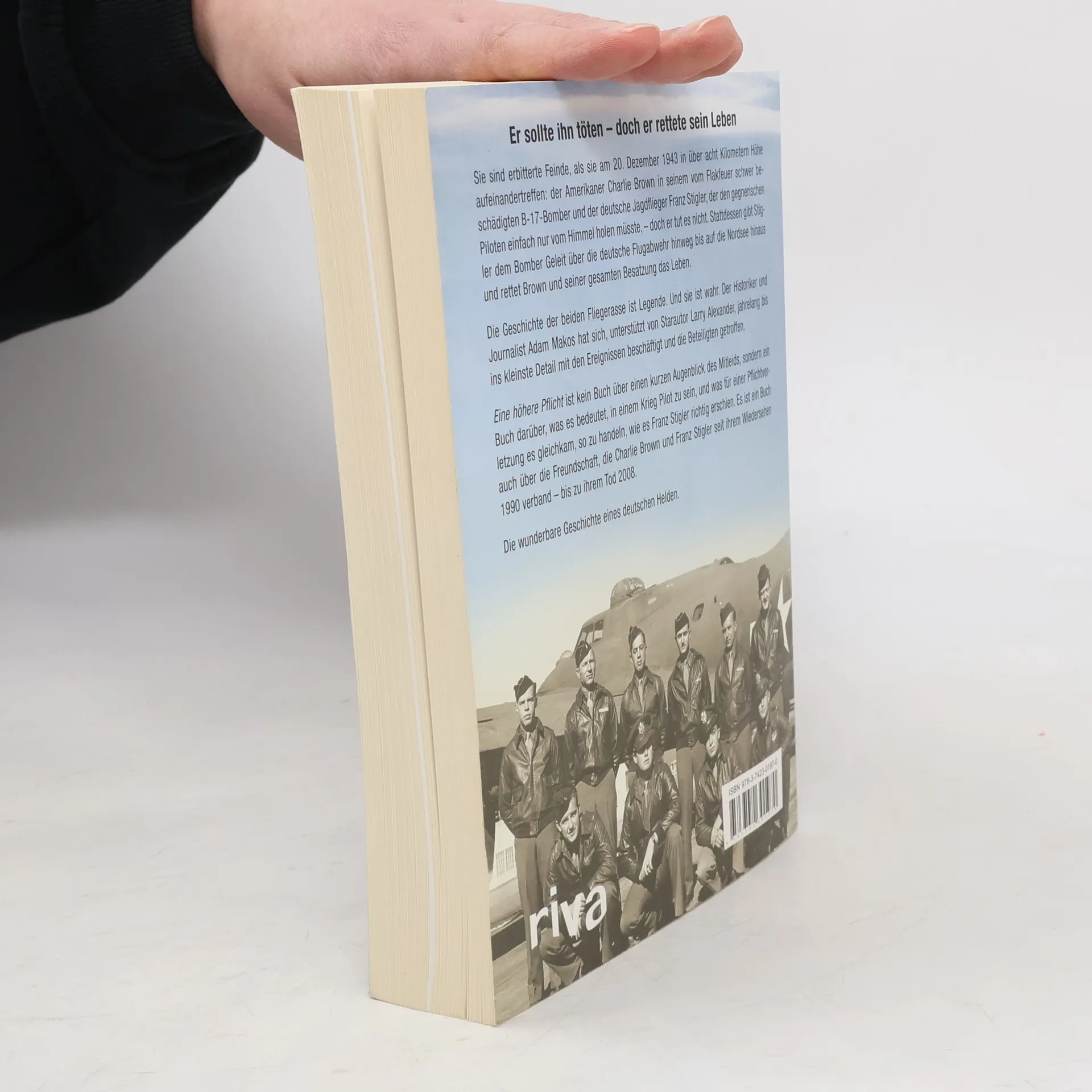 Sie sind erbitterte Feinde, als sie am 20. Dezember 1943 in über acht Kilometern Höhe aufeinandertreffen: der Amerikaner Charlie Brown in seinem vom Flakfeuer schwer beschädigten B-17-Bomber und der deutsche Jagdflieger Franz Stigler, der den gegnerischen Piloten einfach nur vom Himmel holen müsste, – doch er tut es nicht. Stattdessen gibt Stigler dem Bomber Geleit über die deutsche Flugabwehr hinweg bis auf die Nordsee hinaus und rettet Brown und seiner gesamten Besatzung das Leben. Die Geschichte der beiden Fliegerasse ist Legende. Und sie ist wahr. Der Historiker und Journalist Adam Makos hat sich, unterstützt von Starautor Larry Alexander, jahrelang bis ins kleinste Detail mit den Ereignissen beschäftigt und die Beteiligten getroffen. Eine höhere Pflicht ist kein Buch über einen kurzen Augenblick des Mitleids, sondern ein Buch darüber, was es bedeutet, in einem Krieg Pilot zu sein, und was für einer Pflichtverletzung es gleichkam, so zu handeln, wie es Franz Stigler richtig erschien. Es ist ein Buch auch über die Freundschaft, die Charlie Brown und Franz Stigler seit ihrem Wiedersehen 1990 verband – bis zu ihrem Tod 2008. Die wunderbare Geschichte eines deutschen Helden.