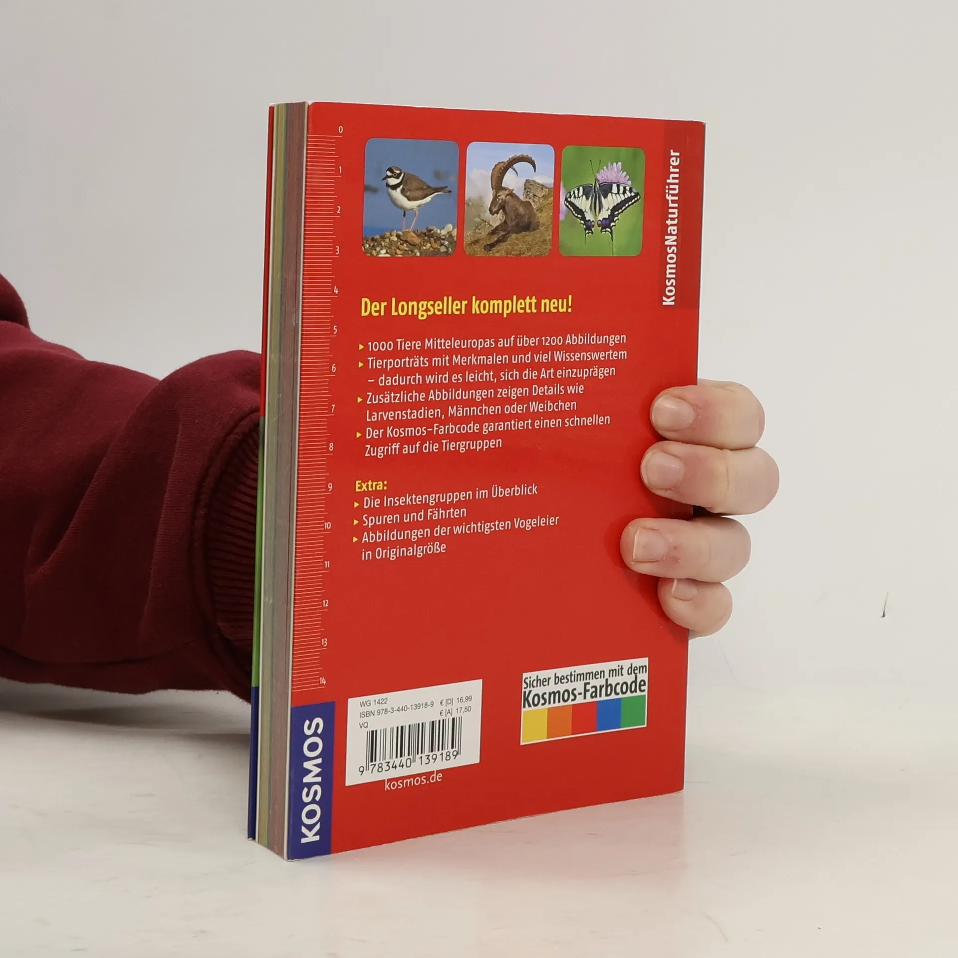 Im Kosmos Tierführer werden 900 Tiere Mitteleuropas in über 1400 Abbildungen vorgestellt. Die Bestimmungsmerkmale und viel Wissenswertes rund ums Tier werden kompakt beschrieben und machen es leicht sich die Art einzuprägen. Zusätzliche Abbildungen zeigen Details wie Larvenstadien, Verhaltensweisen oder die Unterschiede zwischen Männchen und Weibchen. Der Kosmos-Farbcode garantiert einen schnellen Zugriff auf die Tiergruppen. Die einfache Bestimmung der Tiere macht diesen Longseller zu einem unentbehrlichen Begleiter für die ganze Familie.