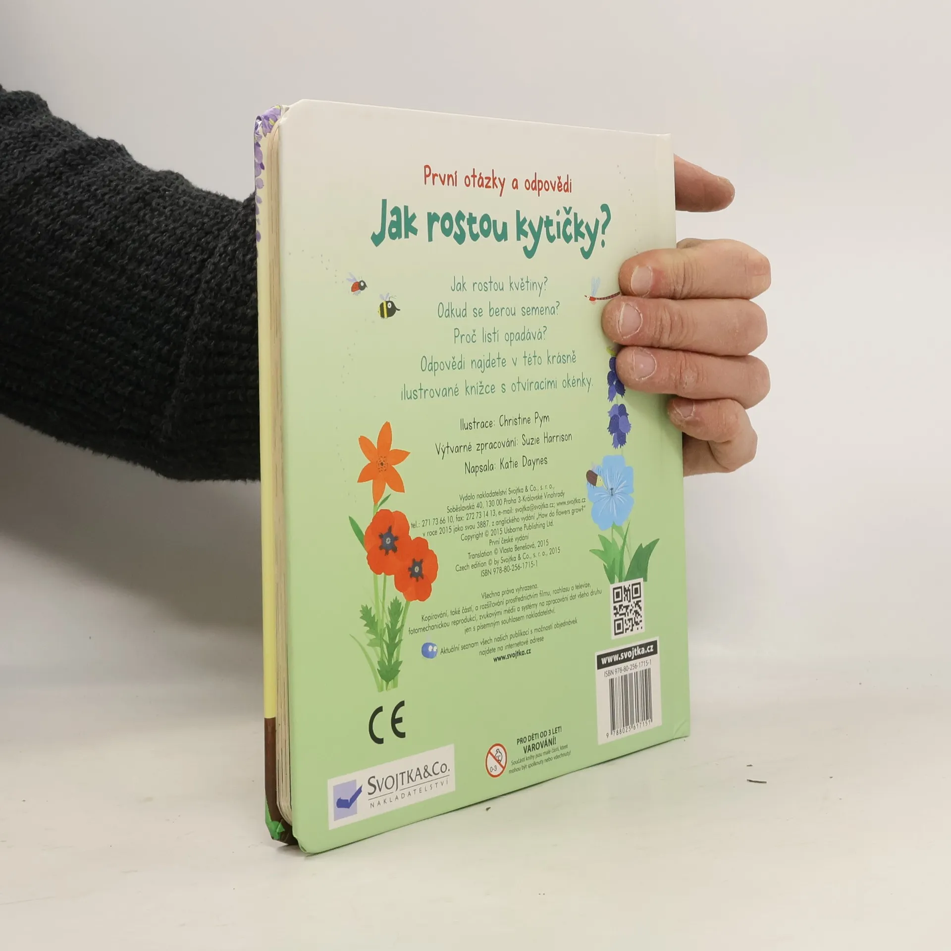 V této krásně ilustrované knížce s odklápěcími okénky najdete odpovědi na první otázky týkající se rostlin kolem nás. Potřebují rostliny nějakou potravu? Proč mají rostliny květy? Proč jsou květy barevné a hezky voní? Proč mění listy barvu a opadávají? Jaké jsou největší, nejpodivnější a nejvíce páchnoucí rostliny? Odpovědi na tyto a mnoho dalších otázek týkajících se rostlin kolem nás najdete v této krásně ilustrované knížce s odklápěcími okénky.