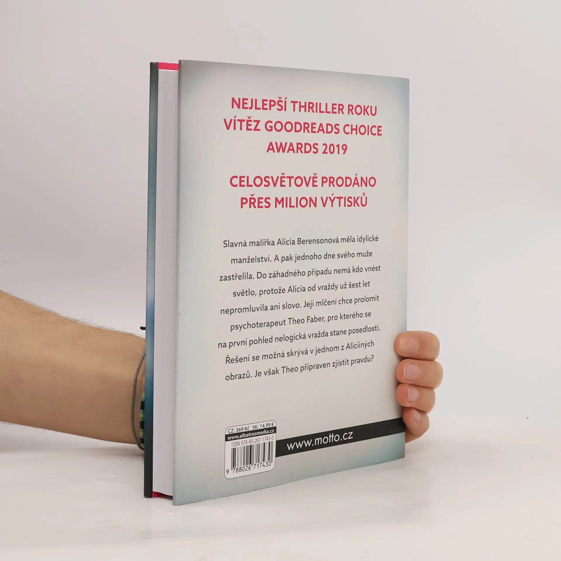 Ticho ještě nikdy nebylo hlasitější. Psychologický thriller, který přečtete jedním dechem. Nejlepší thriller roku – vítěz Goodreads Choice Awards 2019 Celosvětově prodáno přes milion výtisků Slavná malířka Alicia Berensonová měla idylické manželství. A pak jednoho dne svého muže zastřelila. Do záhadného případu nemá kdo vnést světlo, protože Alicia od vraždy už šest let nepromluvila ani slovo. Její mlčení chce prolomit psychoterapeut Theo Faber, pro kterého se na první pohled nelogická vražda stane posedlostí. Řešení se možná skrývá v jednom z Aliciiných obrazů. Je však Theo připraven zjistit pravdu?