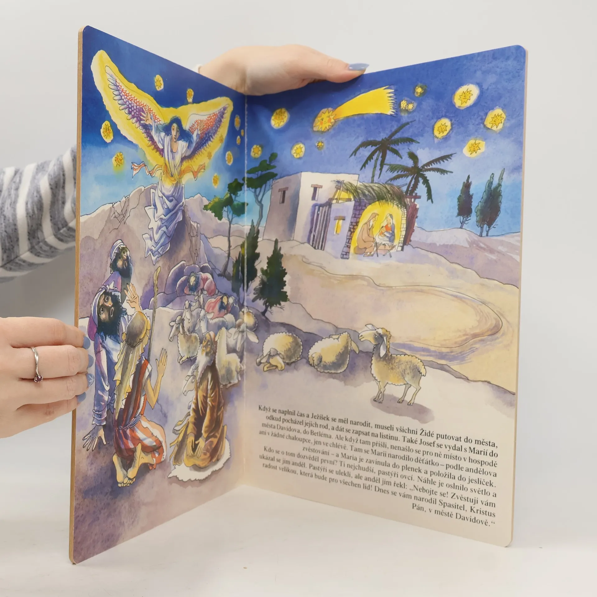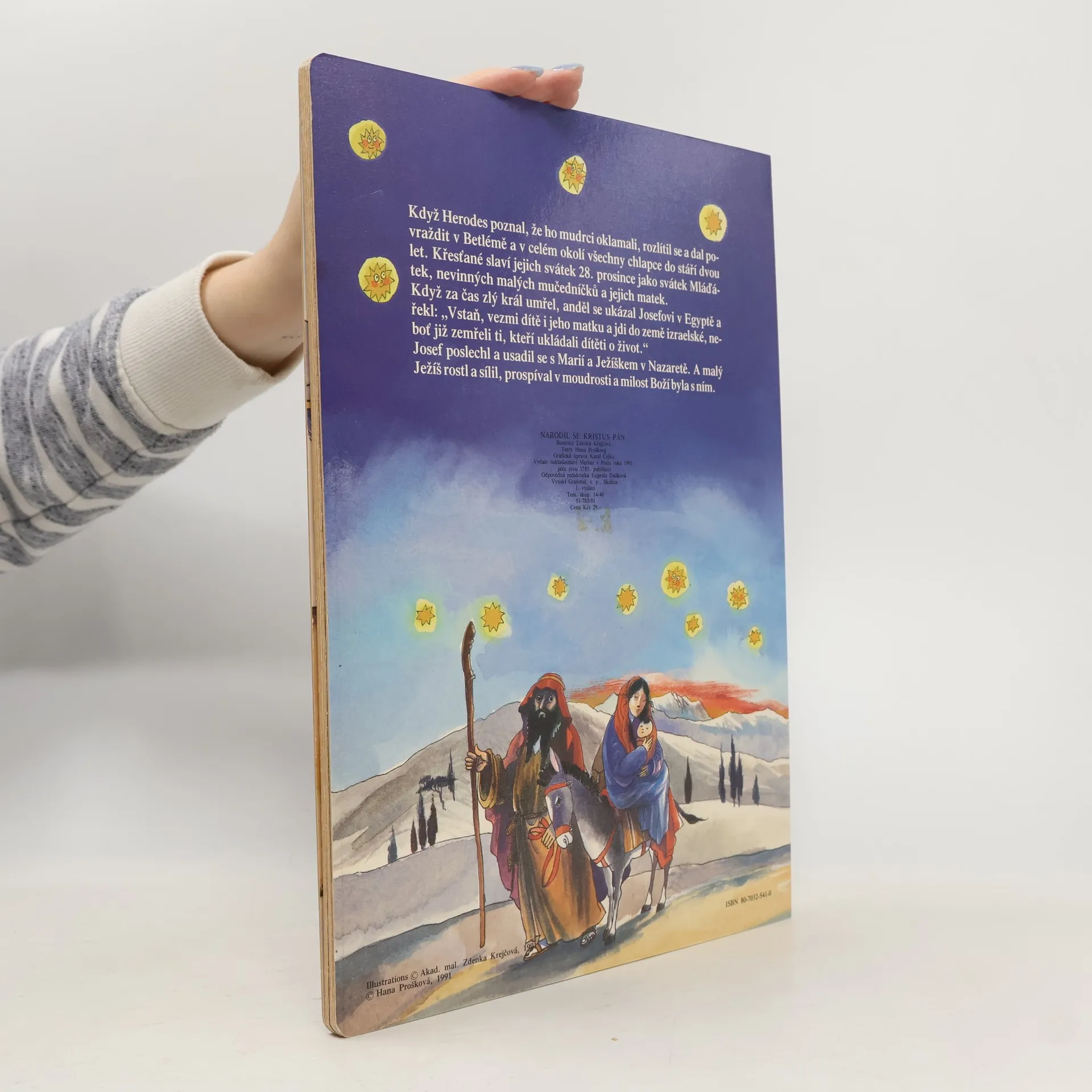 Příběh narození Krista převyprávěný krátkým textem s velkými celostránkovými obrázky je určen mladším školákům.