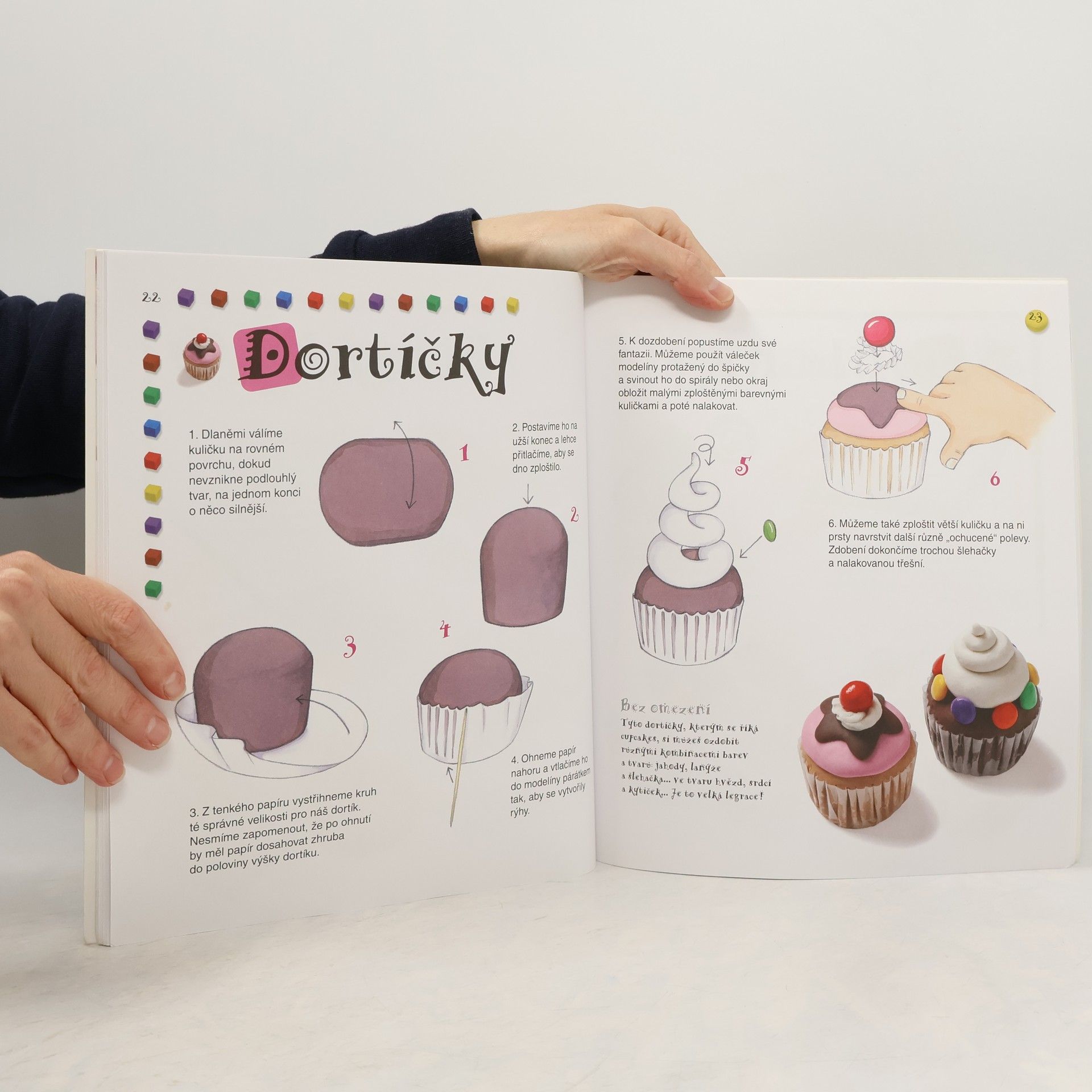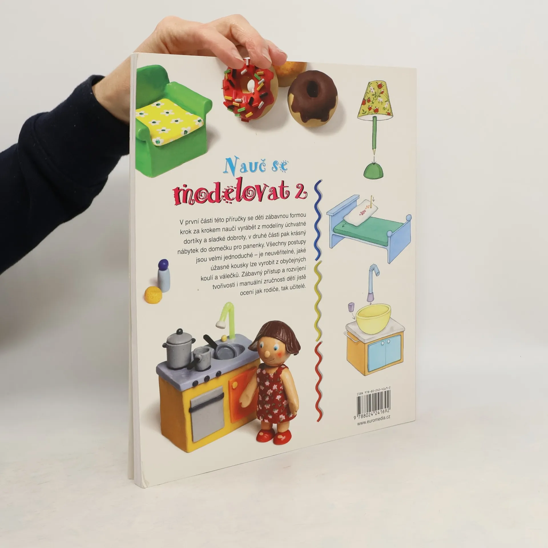 V první části této příručky se děti zábavnou formou krok za krokem naučí vyrábět z modelíny úchvatné dortíky a sladké dobroty, v druhé části pak krásný nábytek do domečku pro panenky. Všechny postupy jsou velmi jednoduché – je neuvěřitelné, jaké úžasné kousky lze vyrobit z obyčejných kuliček a válečků. Zábavný přístup a rozvíjené tvořivosti i manuální zručnosti dětí jistě ocení jak rodiče, tak učitelé.