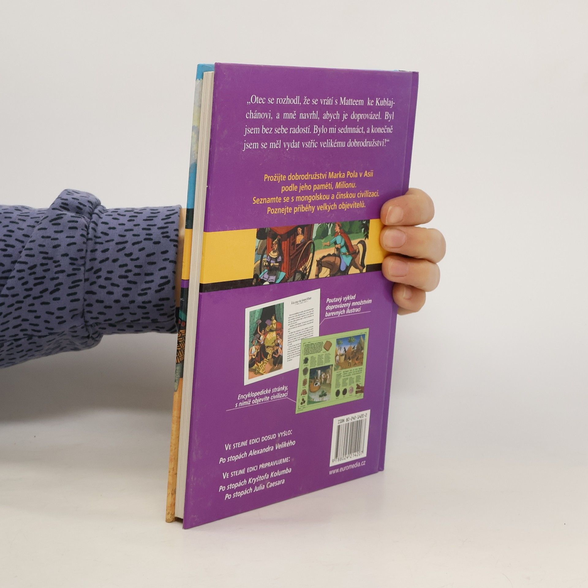 Další svazek z populárně naučné řady francouzského nakladatelství Gallimard, určené čtenářům od 10 let, nás seznámí se vzrušujícím osudem slavného cestovatele, rodáka z Benátek, Marka Pola. Poutavé vyprávění o jeho velké cestě, která vyvrcholila setkáním s Kublajchánem, doprovázejí barevné ilustrace. Do každé kapitoly je vložena výkladová část s dokumentárními fotografiemi. V KK již vyšel svazek Po stopách Alexandra Velikého, chystáme Po stopách Kryštofa Kolumba.