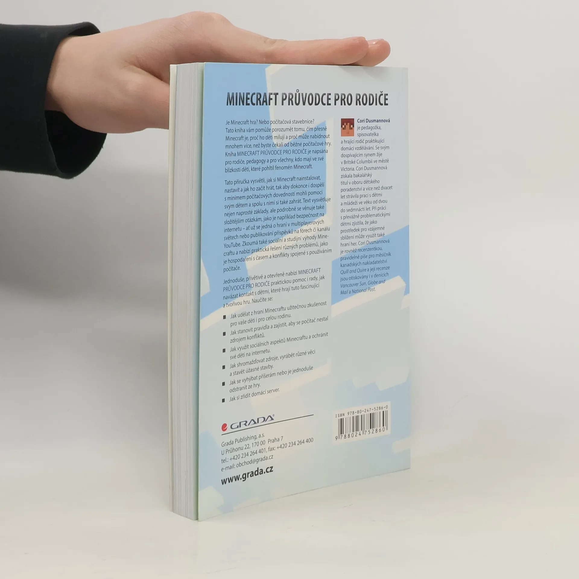 Vítejte v úžasném a tvořivém světě Minecraftu a sdílejte herní zážitky se svými dětmi! Pohltil vaše dítě Minecraft? Tato kniha vám pomůže pochopit, co přesně Minecraft je a proč ho děti tak milují. Tato zdánlivě jednoduchá hra může nabídnout mnohem víc, než jste zvyklí od běžných počítačových her očekávat. Ojedinělou příručku o neuvěřitelně úspěšném herním fenoménu napsala americká pedagožka, spisovatelka a vášnivá hráčka Minecrafu, která nasbírala řadu praktických zkušeností díky práci s dětmi a také díky domácí výuce svého syna, při níž objevila zajímavé výukové a výchovné možnosti hry Minecraft. Jednoduše a přívětivě vám autorka nabídne praktickou pomoc i rady, jak navázat kontakt s dětmi, které hrají tuto fascinující a tvořivou hru, a obohatit tak váš rodinný život. Naučíte se: - Jak udělat z hraní Minecraftu užitečnou zkušenost pro vaše děti a celou rodinu. - Jak stanovit pravidla a zajistit, aby se čas strávený u počítače nestal zdrojem konfliktů. - Jak využít sociálních aspektů Minecraftu a ochránit své děti na internetu. - Jak shromažďovat zdroje, vyrábět různé věci a stavět úžasné stavby. - Jak se vyhýbat příšerám nebo je jednoduše odstranit ze hry. - Jak si zřídit domácí server.