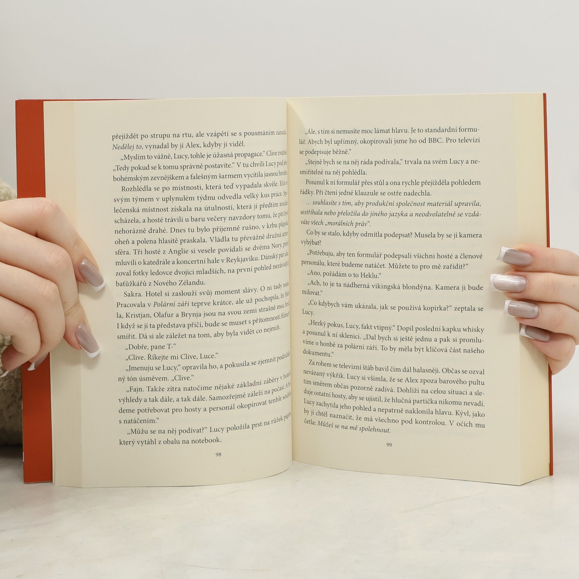 Lucy nic nechybí, má dobrou práci v hotelu a přítele. Jenže stačí jedna jediná nehoda a vše se změní – dostane padáka a kopačky. Její život je náhle v troskách, nedaří se jí najít novou práci, úspory docházejí a už brzy nezbude nic jiného než se přestěhovat zpátky k rodičům, a to za žádnou cenu nechce. Takže když jí personální agentura nabídne místo manažerky hotýlku Polární záře na Islandu, okamžitě přijme i přes to, že nesnáší zimu. Po příjezdu se nemůže zbavit dojmu, že udělala chybu. Jako šéfová se navíc uvede naprostým trapasem, takže pochybuje, jestli ji podřízení přijmou. Jenže pak jako by jí osud dal znamení, že má zůstat. V noci se na nebi roztančí polární záře a Lucy se při sledování toho fascinující podívané rozhodne vytěžit z téhle životní příležitosti co nejvíc. Využije všech svých znalostí a zkušeností a postará se, aby se z Polární záře stal nejúžasnější romantický hotel na celém Islandu! Hotel má špatné hodnocení a je poloprázdný, takže ji čeká pořádně tvrdá práce. Lucy dělá, co může, ale má pocit, že se jí někdo snaží škodit. Jsou k ní všichni kolegové upřímní? Může jim důvěřovat? Navíc ji začíná zneklidňovat barman Alex… Mezi ním a Lucy to sice jiskří, ale záhy se ukáže, že Alex skrývá nějaké tajemství…