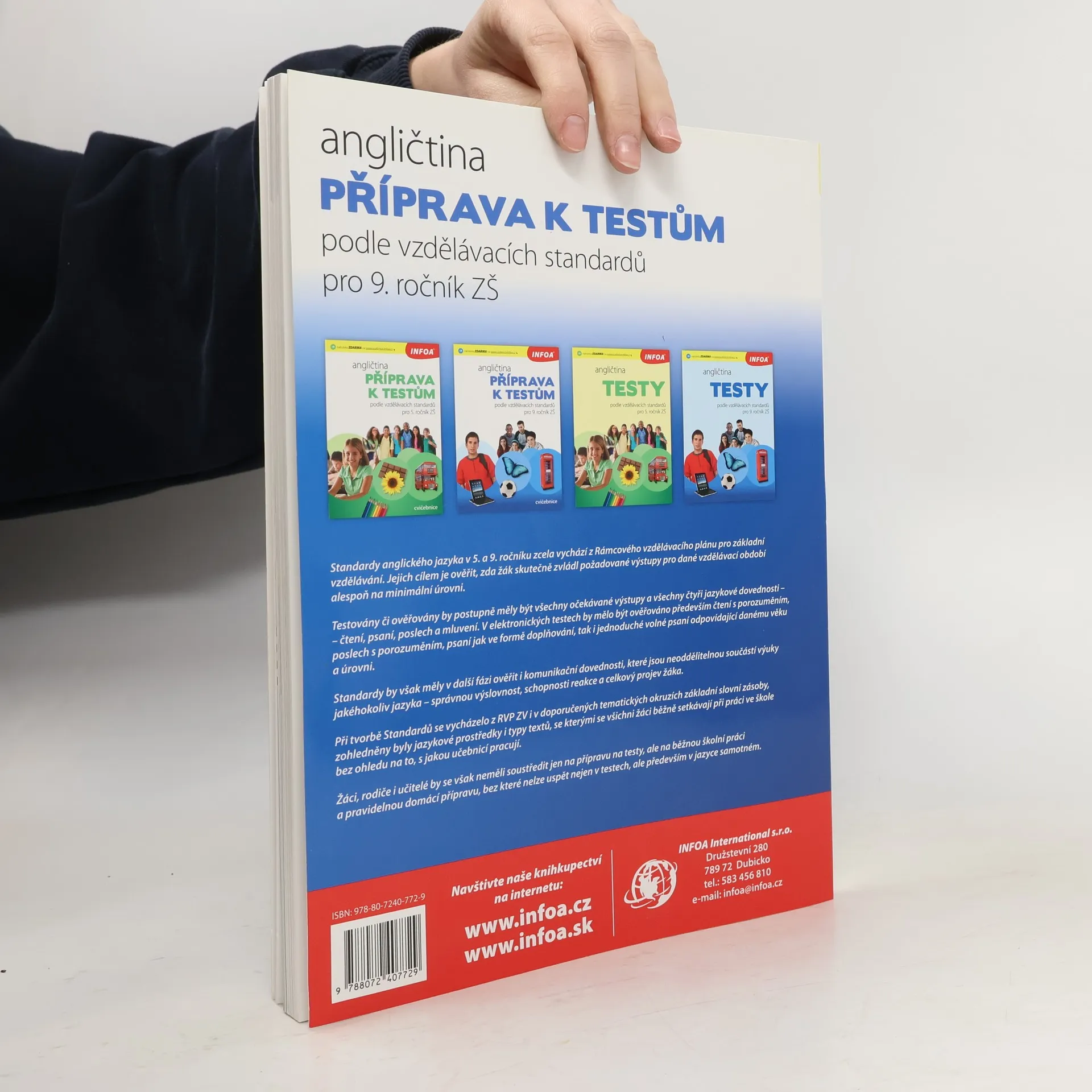 Kniha je koncipována jako doplňkový materiál k jinému hlavnímu kurzu. Doporučená hodinová dotace pro zvládnutí učiva je 1 hodina týdně po dobu jednoho školního roku. Cílem cvičebnice je ověřit, zda žák skutečně zvládl požadované výstupy pro dané vzdělávací období alespoň na minimální úrovni. Testovány či ověřovány by postupně měly být všechny očekávané výstupy a všechny čtyři jazykové dovednosti – čtení, psaní, poslech a mluvení. Obsahem učebnice jsou: - Seznam indikátorů pro 9. ročník - Témata: 1. Human 2. Home 3. Family and Society 4. School 5. Job 6. Food 7. Shopping and Services 8. Travelling and Tourism 9. Culture 10. Media 11. Sport 12. Health 13. Science and Technology 14. Nature and Weather 15. English speaking countries - Přepis nahrávek - Klíč - Slovník