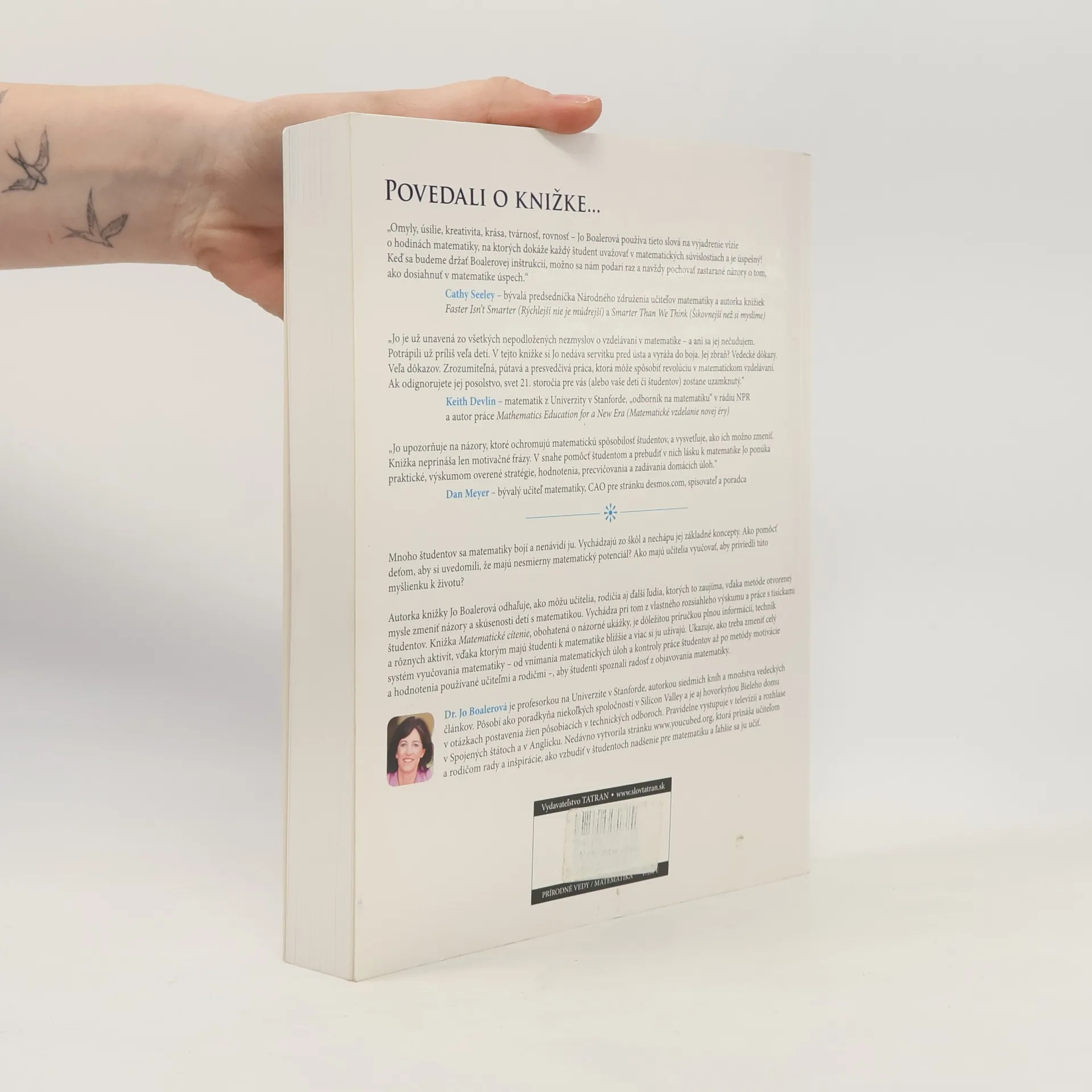 Odhaľte potenciál študentov prostredníctvom kreatívnej matematiky, motivačného prístupu a inovatívneho spôsobu učenia. Mnoho študentov sa matematiky bojí a nenávidí ju. Vychádzajú zo škôl a nechápu jej základné koncepty. Ako pomôcť deťom, aby si uvedomili, že majú nesmierny matematický potenciál? Ako majú učitelia vyučovať, aby priviedli túto myšlienku k životu? Autorka knižky Jo Boalerová odhaľuje, ako môžu učitelia, rodičia aj ďalší ľudia, ktorých to zaujíma, vďaka metóde otvorenej mysle zmeniť názory a skúsenosti detí s matematikou. Vychádza pri tom z vlastného rozsiahleho výskumu a práce s tisíckami študentov. Knižka Matematické cítenie, obohatená o názorné ukážky, je dôležitou príručkou plnou informácií, techník a rôznych aktivít, vďaka ktorým majú študenti k matematike bližšie a viac si ju užívajú. Ukazuje, ako treba zmeniť celý systém vyučovania matematiky – od vnímania matematických úloh a kontroly práce študentov až po metódy motivácie a hodnotenia používané učiteľmi a rodičmi, aby študenti spoznali radosť z objavovania matematiky.