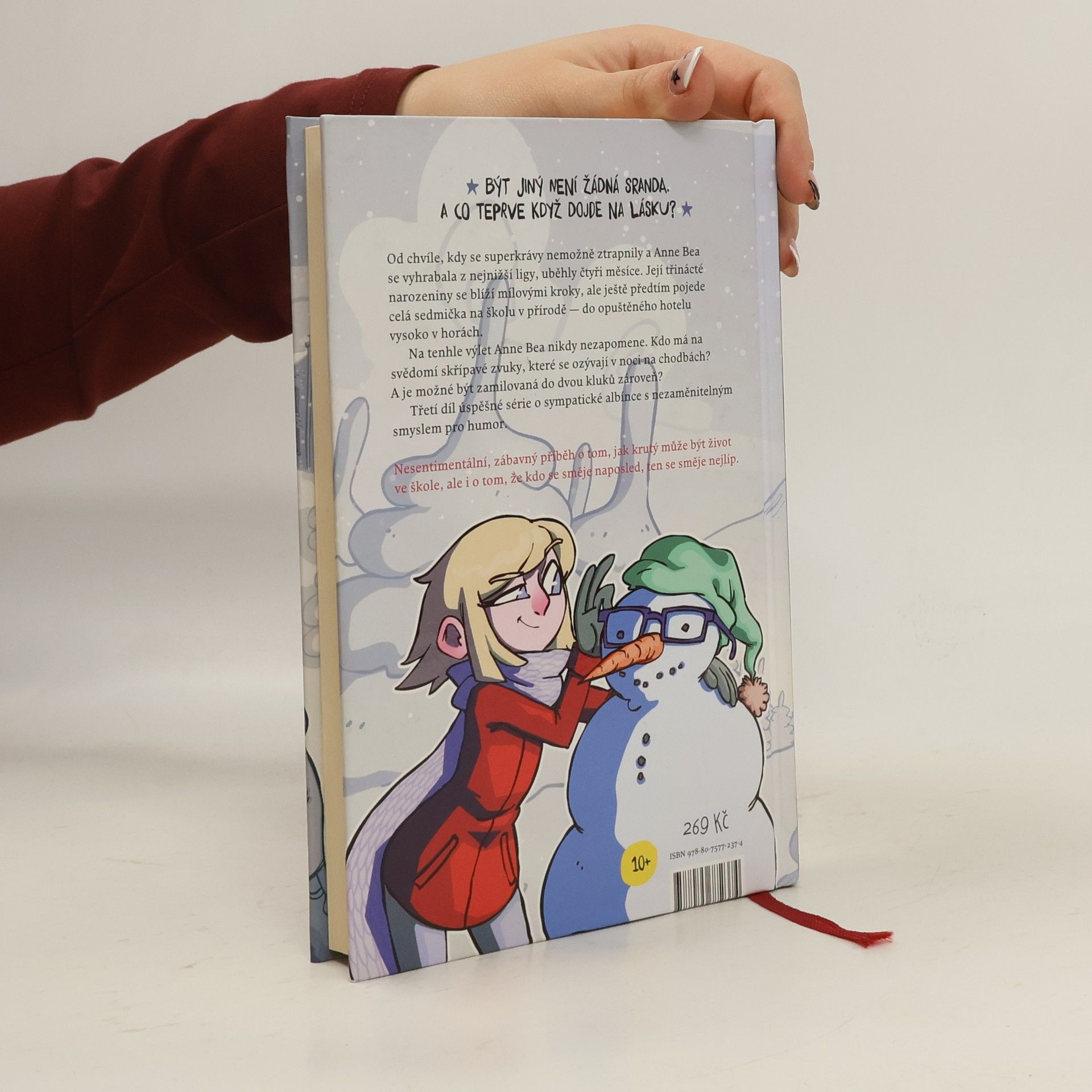Být jiný není žádná sranda. A co teprve když dojde na lásku? Od chvíle, kdy se superkrávy nemožně ztrapnily a Anne Bea se vyhrabala z nejnižší ligy, uběhly čtyři měsíce. Její třinácté narozeniny se blíží mílovými kroky, ale ještě předtím pojede celá sedmička na školu v přírodě — do opuštěného hotelu vysoko v horách. Na tenhle výlet Anne Bea nikdy nezapomene. Kdo má na svědomí nepříjemné zvuky linoucí se ze sklepa? A je možné být zamilovaná do dvou kluků zároveň? Třetí díl norské bestsellerové série o sympatické albínce s nezaměnitelným smyslem pro humor. Neuvěřitelné se stane skutečností! O Anne Beu se zajímají hned dva kluci!