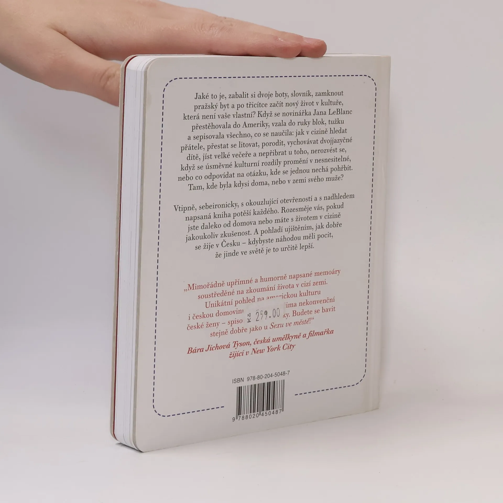 Jaké to je, zabalit si dvoje boty, slovník, zamknout pražský byt a po třicítce začít nový život v kultuře, která není vaše vlastní? Když se novinářka Jana LeBlanc přestěhovala do Ameriky, vzala do ruky blok, tužku a sepisovala všechno, co se naučila: jak v cizině hledat přátele, přestat se litovat, porodit, vychovávat dvojjazyčné dítě, jíst velké večeře a nepřibrat u toho, nerozvést se, když se úsměvné kulturní rozdíly promění v nesnesitelné, nebo co odpovídat na otázku, kde se jednou nechá pohřbít. Tam, kde byla kdysi doma, nebo v zemi svého muže? Vtipně, sebeironicky, s okouzlující otevřeností a s nadhledem napsaná kniha potěší každého. Rozesměje vás, pokud jste daleko od domova nebo máte s životem v cizině jakoukoli zkušenost. A pohladí ujištěním, jak dobře se žije v Česku – kdybyste náhodou měli pocit, že jinde ve světě to je určitě lepší.
