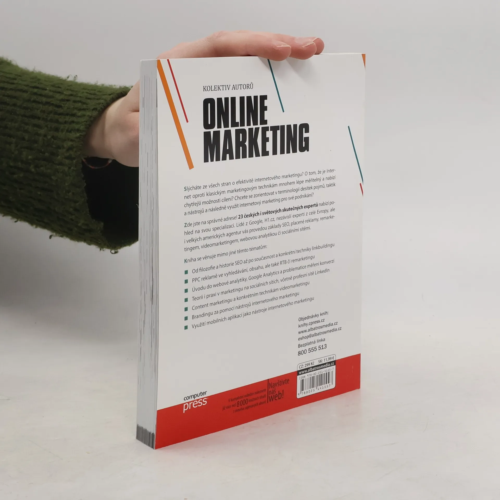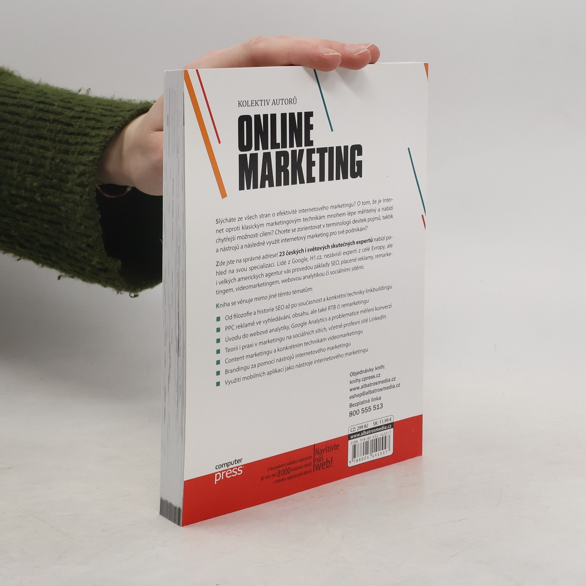Slýcháte ze všech stran o efektivitě internetového marketingu? O tom, že je Internet oproti klasickým marketingovým technikám mnohem lépe měřitelný a nabízí chytřejší možnosti cílení? Chcete se zorientovat v terminologii desítek pojmů, taktik a nástrojů a následně využít internetový marketing pro své podnikání? Zde jste na správné adrese! 23 českých i světových skutečných expertů nabízí pohled na svou specializaci. Lidé z Google, H1.cz, nezávislí experti z celé Evropy, ale i velkých amerických agentur vás provedou základy SEO, placené reklamy, remarketingem, videomarketingem, webovou analytikou či sociálními sítěmi. Kniha se věnuje mimo jiné těmto tématům: - Od filozofie a historie SEO až po současnost a konkrétní techniky linkbuildingu - PPC reklamě ve vyhledávání, obsahu, ale také RTB či remarketingu - Úvodu do webové analytiky, Google Analytics a problematice měření konverzí - Teorii i praxi v marketingu na sociálních sítích, včetně profesní sítě LinkedIn - Content marketingu a konkrétním technikám videomarketingu - Brandingu za pomocí nástrojů internetového marketingu - Využití mobilních aplikací jako nástroje internetového marketingu