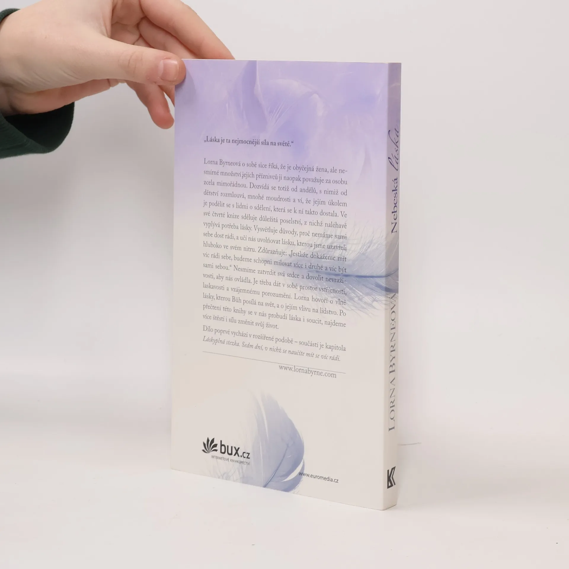 Lorna Byrneová (1953) je irská mystička a autorka mezinárodních bestsellerů. Od dětství má výjimečnou schopnost vidět anděly; po celý život se od nich dozvídá informace, které mohou být pro svět zásadní. Poprvé nyní vychází komplet všech jejích děl, obsahující autobiografickou knihuAndělé v mých vlasech, volné pokračování s názvem Schody do nebe, dále Andělské poselství naděje, v němž autorka radí, jak oslovovat anděly s prosbou o pomoc, a zatím poslední Nebeskou lásku, která je rozšířena o novou kapitolu Láskyplná stezka. Sedm dní, v nichž se naučíte mít víc rádi sami sebe. Čtenáře potěší i 8 andělských karet a pírko.