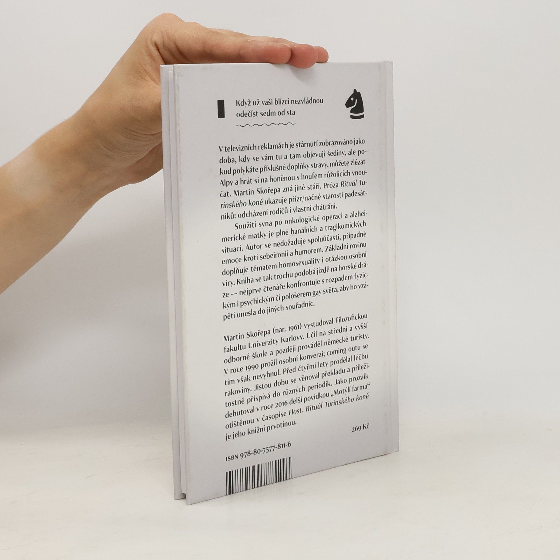 Když už vaši blízcí nezvládnou odečíst od stovky sedm. V televizních reklamách je stárnutí zobrazováno jako doba, kdy se vám tu a tam objevují šediny, ale pokud polykáte příslušné doplňky stravy, můžete zlézat Alpy a hrát si na honěnou s houfem růžolících vnoučat. Martin Skořepa zná jiné stárnutí. Próza Rituál Turínského koně ukazuje příznačné starosti padesátníků: odcházení rodičů i vlastní chátrání. Soužití syna po onkologické operaci a alzheimerické matky je bolestivé, utrápené, banální i plné každodenních drobných zápasů, kdy vás tělo postupně vyloučí z „normálního“ života. A jako by to všechno nestačilo, jsou tu ještě dvě roviny, v nichž se zápas s tělesnem odehrává: víra a homosexuální sadomasochismus. Skořepův hrdina nechce dojímat ani šokovat, je sebeironický a vtipný, nevyžaduje od čtenářů soucit ani účast. Jen nutí přemýšlet o těle a o duši.