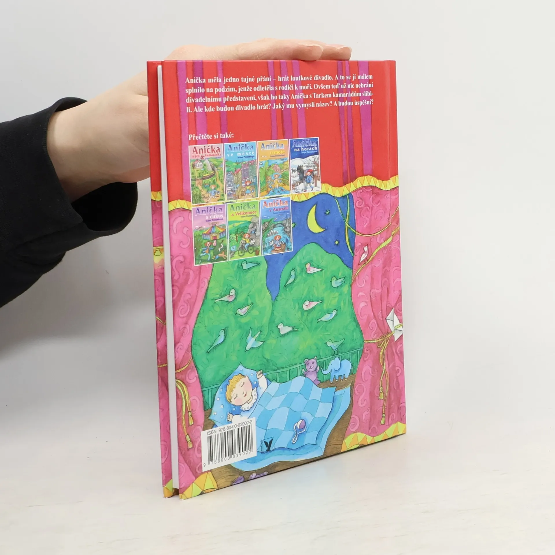 Anička měla jedno tajné přání – hrát loutkové divadlo. A to se jí málem splnilo na podzim, jenže nakonec odletěla s rodiči k moři. Ovšem teď se zdá, že už nic nebrání předprázdninovému divadelnímu představení, však ho taky Anička s Tarkem slíbili spolužákům a kamarádům. Ale kde budou divadlo hrát? Jaký mu vymyslí název? A budou úspěšní? Na Aničku čeká vedle radostných příprav i spousta starostí a tajemství. Osmý příběh ze série oblíbených knížek o osmileté Aničce (Anička a její kamarádky, Anička ve městě, Anička u moře, Anička na horách, Anička a cirkus, Anička a Velikonoce, Anička v Austrálii).