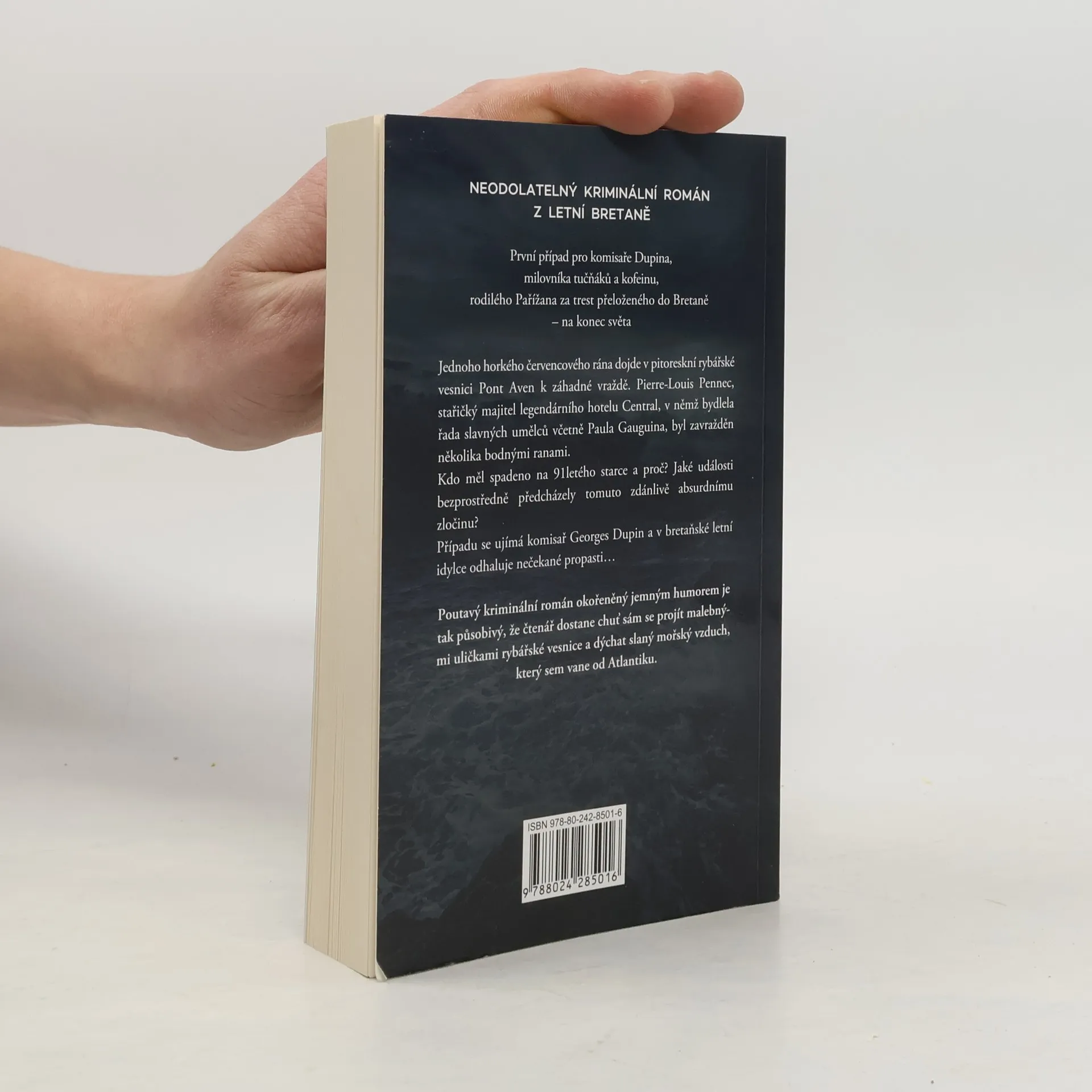 První případ pro komisaře Dupina, milovníka tučňáků a kofeinu, rodilého Pařížana za trest přeloženého do Bretaně – na konec světa. V malebné pobřežní vesničce je jednoho horkého červencového rána nalezen zavražděný stařičký majitel slavného hotelu. Komisař Georges Dupin se v bretaňské letní idylce záhy dostává na stopu podivuhodného tajemství..
