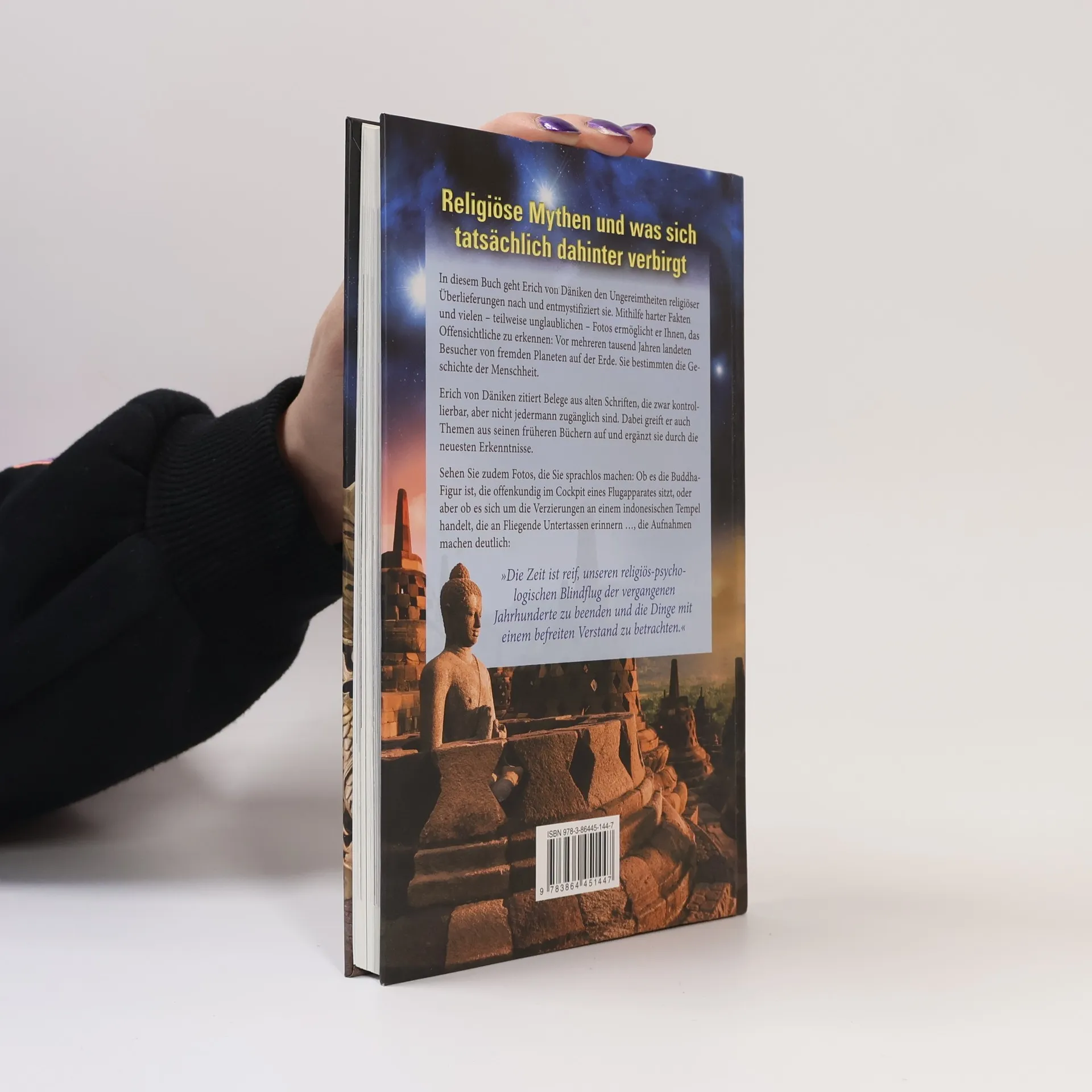 In diesem Buch geht Erich von Däniken den Ungereimtheiten religiöser Überlieferungen nach und entmystifiziert sie. Mithilfe harter Fakten und unglaublicher Fotos zeigt er, dass vor mehreren tausend Jahren Besucher von fremden Planeten auf der Erde landeten und die Geschichte der Menschheit beeinflussten. Abraham, als Urvater der Menschheit, hat eine überraschende Familiengeschichte: Sein Vater Therach lebte in Ur, der „Stadt der Himmlischen“, wo Priester einen Sternenkult betrieben und Götter verehrten, die vom Himmel kamen. Königs Salomons Fähigkeit, große Distanzen zurückzulegen, könnte auf die Nutzung eines Flugobjekts hinweisen, unterstützt durch seltsame Bauwerke, die er errichten ließ. Die Bundeslade, eines der bedeutendsten Heiligtümer, war kein einfacher Kasten zur Aufbewahrung der Zehn Gebote, sondern ein gefährliches technisches Gerät, dessen Kontakt zu gesundheitlichen Problemen führte – Symptome einer Verstrahlung. Auch in den alten indischen Überlieferungen werden Himmelsschiffe beschrieben, die möglicherweise „Space Shuttles“ waren. Däniken zitiert Belege aus alten, kontrollierbaren Schriften und ergänzt sie mit neuen Erkenntnissen. Er präsentiert Fotos, die zum Staunen anregen, wie eine Buddha-Figur im Cockpit eines Flugapparates oder Tempelverzierungen, die an fliegende Untertassen erinnern. Sein Fazit: Es ist an der Zeit, den religiösen Blindflug der Vergangenheit zu beenden und die Dinge mit einem befreite