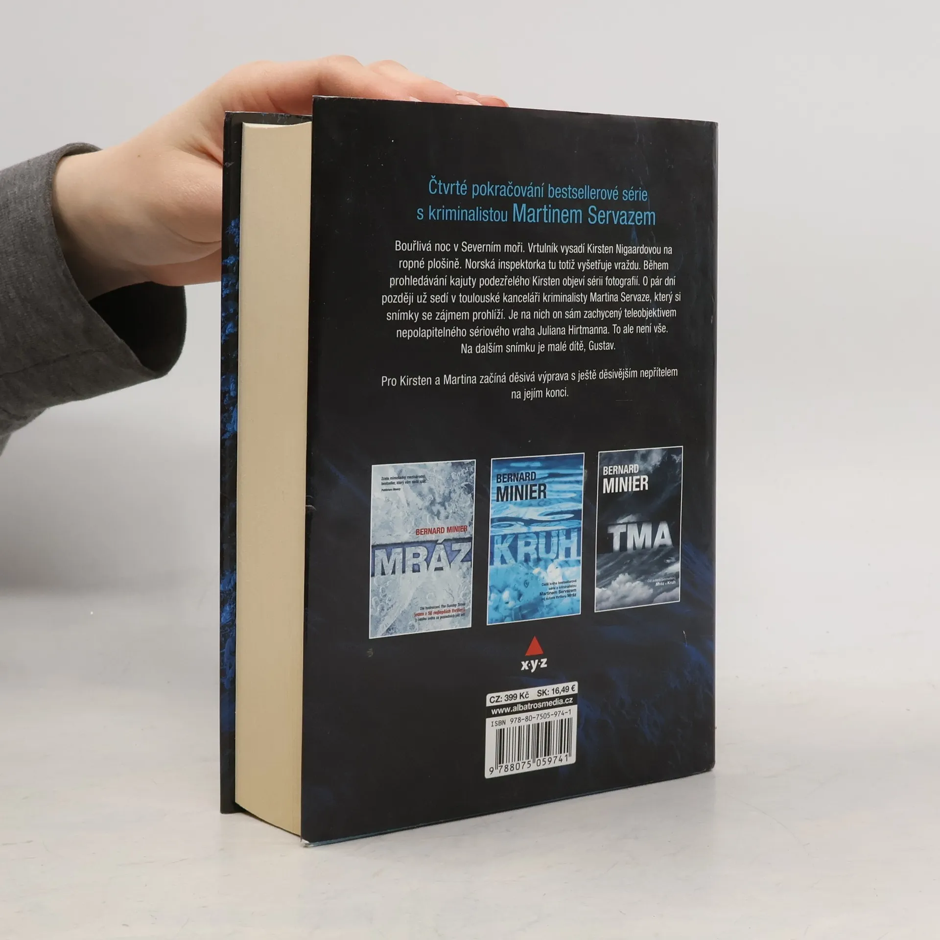 Čtvrté pokračování bestsellerové série s kriminalistou Martinem Servazem. Během vyšetřování vraždy na ropné plošině narazí norská inspektorka Kirsten Nigaardová na sérii fotografií. O pár dní později sedí v toulouské kanceláři kriminalisty Martina Servaze, který si snímky se zájmem prohlíží. Je na nich on sám zachycený objektivem nepolapitelného sériového vraha Juliana Hirtmanna. To ale není vše. Na dalším snímku je malé dítě, Gustav. Pro Kirsten a Martina začíná děsivá výprava s ještě děsivějším nepřítelem na jejím konci.
