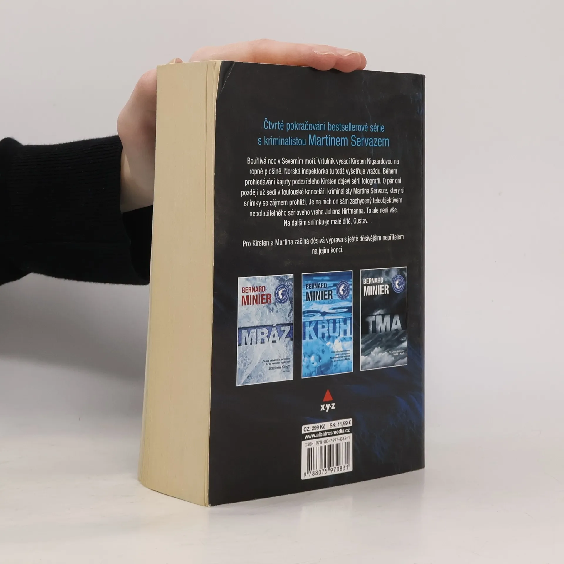 Čtvrté pokračování bestsellerové série s kriminalistou Martinem Servazem. Během vyšetřování vraždy na ropné plošině narazí norská inspektorka Kirsten Nigaardová na sérii fotografií. O pár dní později sedí v toulouské kanceláři kriminalisty Martina Servaze, který si snímky se zájmem prohlíží. Je na nich on sám zachycený objektivem nepolapitelného sériového vraha Juliana Hirtmanna. To ale není vše. Na dalším snímku je malé dítě, Gustav. Pro Kirsten a Martina začíná děsivá výprava s ještě děsivějším nepřítelem na jejím konci.