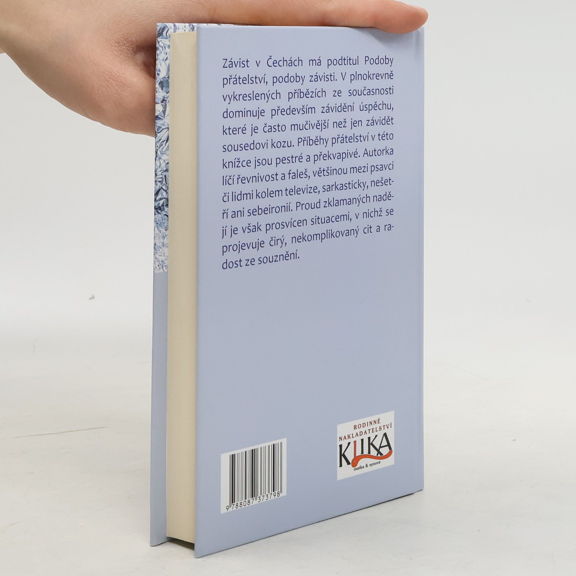 O Češích se říkává, že jsou závistiví, že neumí být spontánně družní a tolerantní. Je to pravda? Jak ji zjistit, když skrývané negativní emoce nelze vyčíslit statistikou. Můžeme vycházet jen ze zkušenosti, zažitých situací a příběhů. Někdy je kontaminuje naše paranoia a nedůvěra, leckdy jsou následkem kouzla nechtěného a je v nich obsažen i humor. Kniha Závist v Čechách má podtitul Podoby přátelství, Podoby závisti. V plnokrevně vykreslených příbězích mapuje především závidění úspěchu, které je často mučivější než jen závidět sousedovi kozu. Příběhy přátelství a závisti v této knížce jsou pestré a často překvapivé. Autorka sarkasticky líčí řevnivost a faleš, většinou mezi psavci či lidmi kolem televize, nešetří ani sebeironií. Proud zklamaných nadějí je však prosvícen situacemi, v nichž se projevuje čiré, nekomplikované přátelství.
