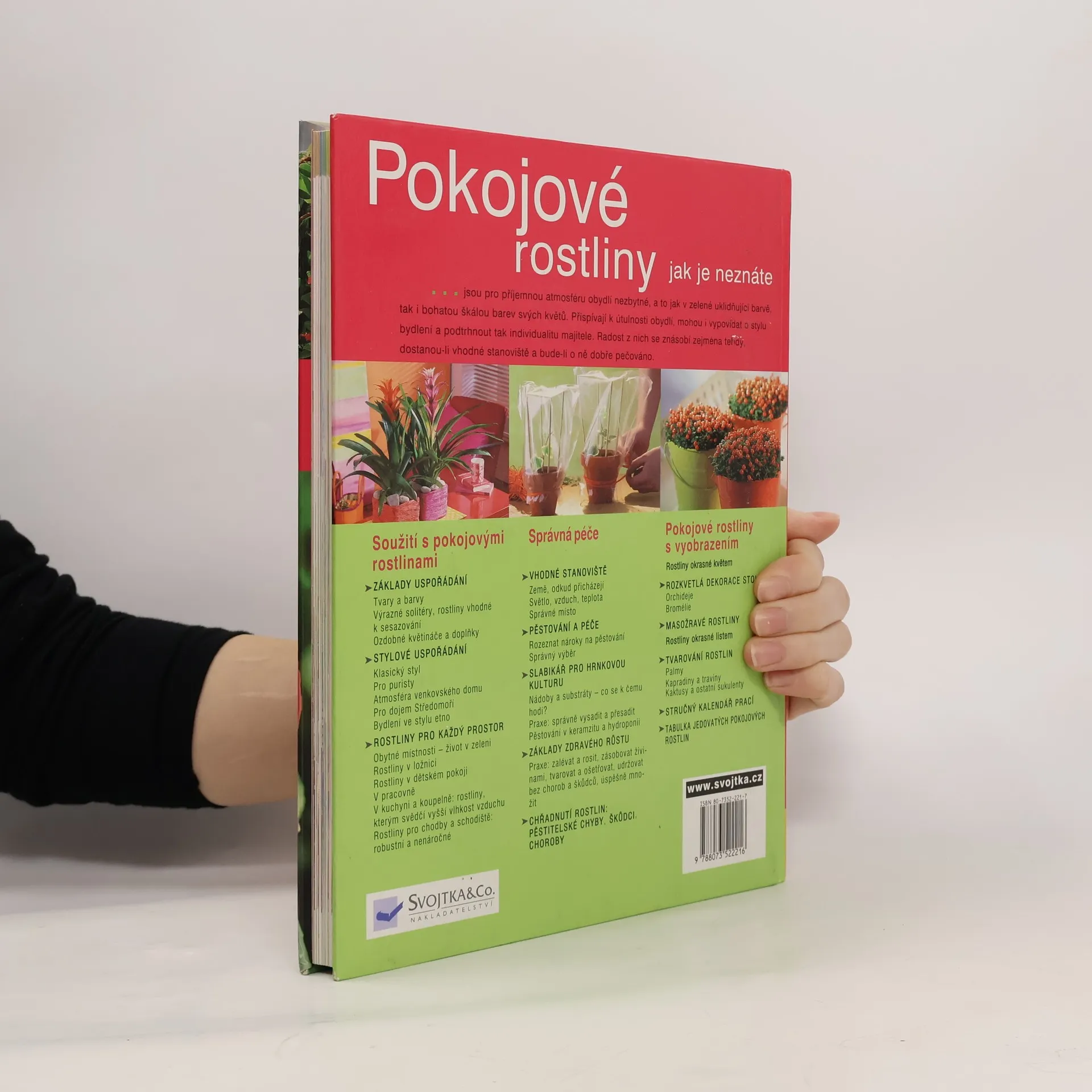 200 portrétů známých i méně známých pokojových rostlin. Dozvíte se o soužití s pokojovými rostlinami - o základech uspořádání, tvarech a barvách, stylovém uspořádání, poučíte se jak navodit klasický styl či atmosféru venkovského domu. Kniha vám poradí s tím jaké rostliny umístit do ložnice, dětského pokoje, pracovny, kuchyně a koupelny.. Naučíte se o rostliny správně pečovat – počínaje vhodným stanovištěm, nádobami a substráty a konče pěstitelskými chybami. Publikace nabízí pokojové rostliny s vyobrazením a možnost jejich tvarování.