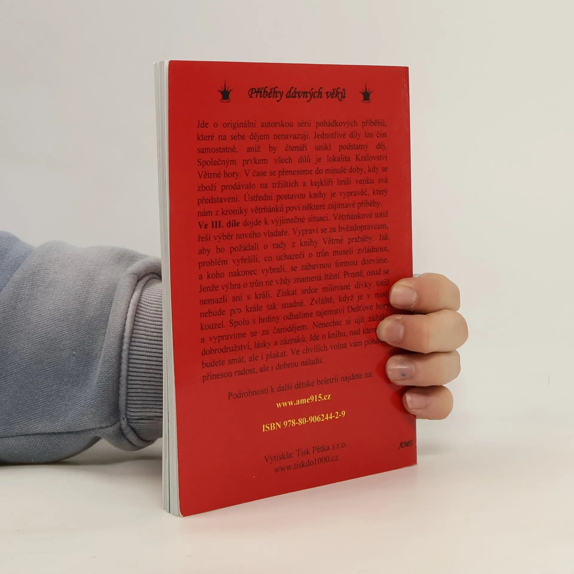 Jedná se o autorskou novinku s dosud nepublikovanými pohádkovými příběhy, které tvoří tři zcela samostatné publikace, vydané pod shodným názvem. Spojovacím prvkem všech dílů je malebné Království Větrné hory, kde se odehrávají napínavé, dobrodružné a romantické příběhy, které čtenáře okamžitě zaujmou. Ústřední postavou je vypravěč-kejklíř, jenž nás přenáší do atmosféry historického středověku, kdy se zboží prodávalo na tržištích a kejklíři bavili publikum svými vystoupeními. Z kroniky větrňánků se dozvídáme o událostech v království, včetně humorného vyprávění o zkouškách uchazečů o královský trůn ve třetím díle. Získání trůnu však neznamená vždy štěstí, neboť osud se nemazlí ani s králi, zvláště při hledání skutečné lásky. Král s pomocí přátel a zvířat objevuje tajemství Dešťové hory a vydává se na cestu do Dračího království, aby našel úkryt čaroděje Zöka. Získat srdce milované dívky není v pohádkách jednoduché, a tak se v příběhu střídají překvapení, romantika, dobrodružství, kouzla a zázraky. Tato zdařilá prvotina by neměla chybět v knihovničce milovníků pohádek a s doprovodnými ilustracemi potěší každého čtenáře.